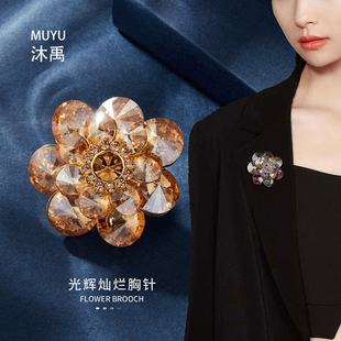 璀璨绽放优雅水晶花朵胸针高级感金色魅影衣饰胸花新款时尚女别针