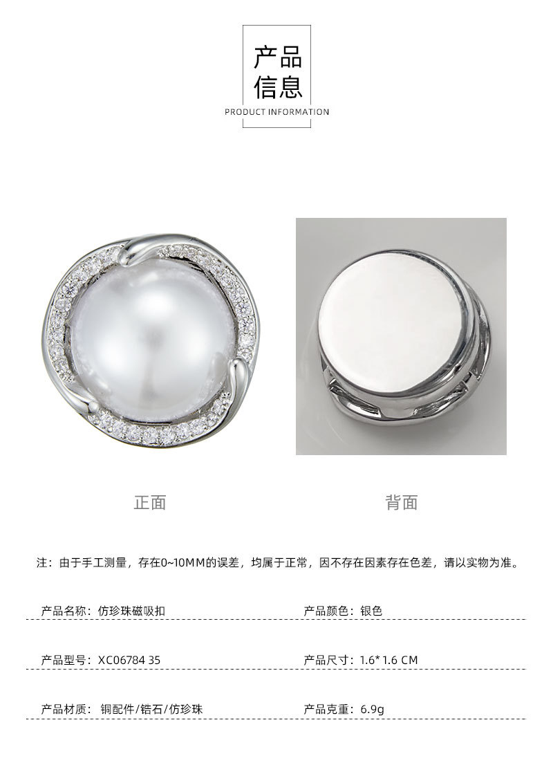 春夏新款仿珍珠磁吸扣无针眼不伤衣服时尚胸花简约防曝光精致衣饰 投诉