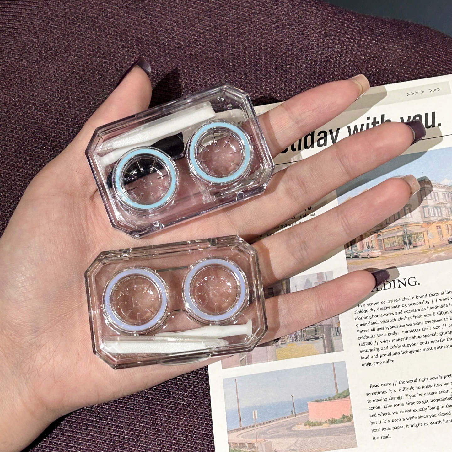 伴侣盒套装组成:双联盒、镊子 ,配戴棒。