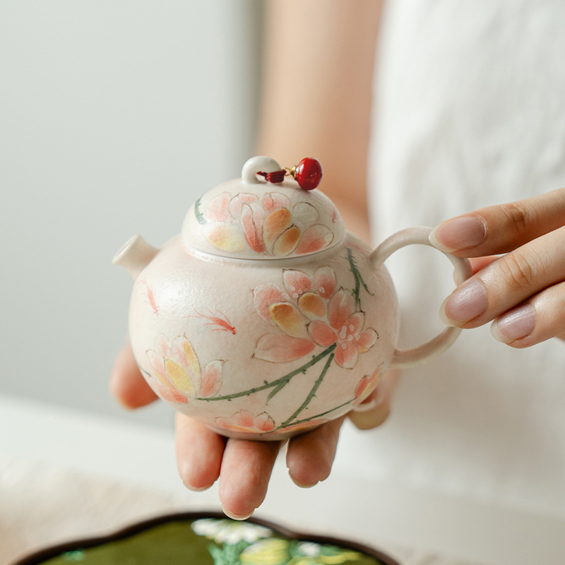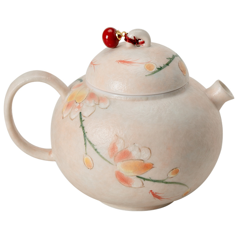高颜值原矿雾粉纯手绘玉兰花圆肚茶壶带提溜防烫家用泡茶壶陶瓷 投诉