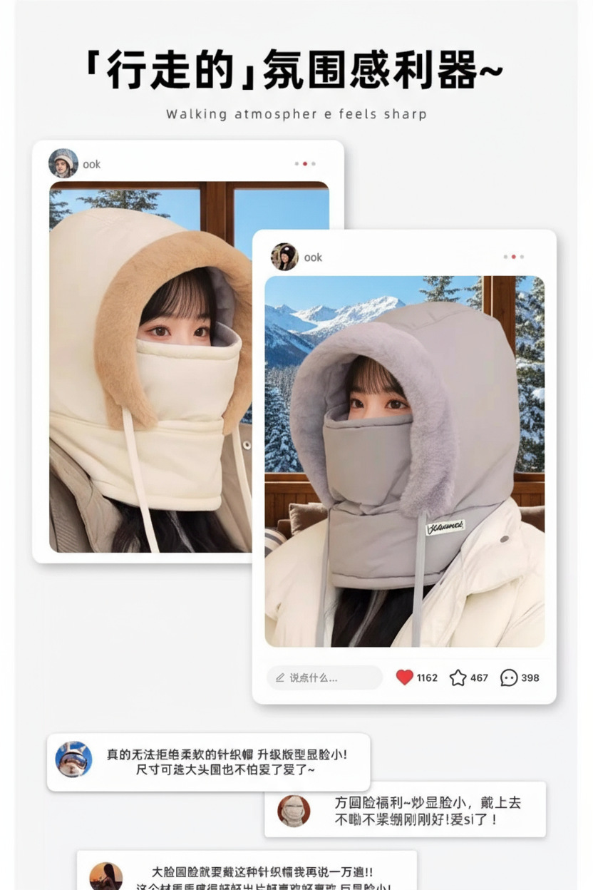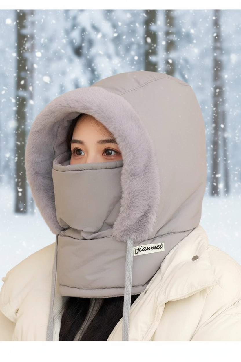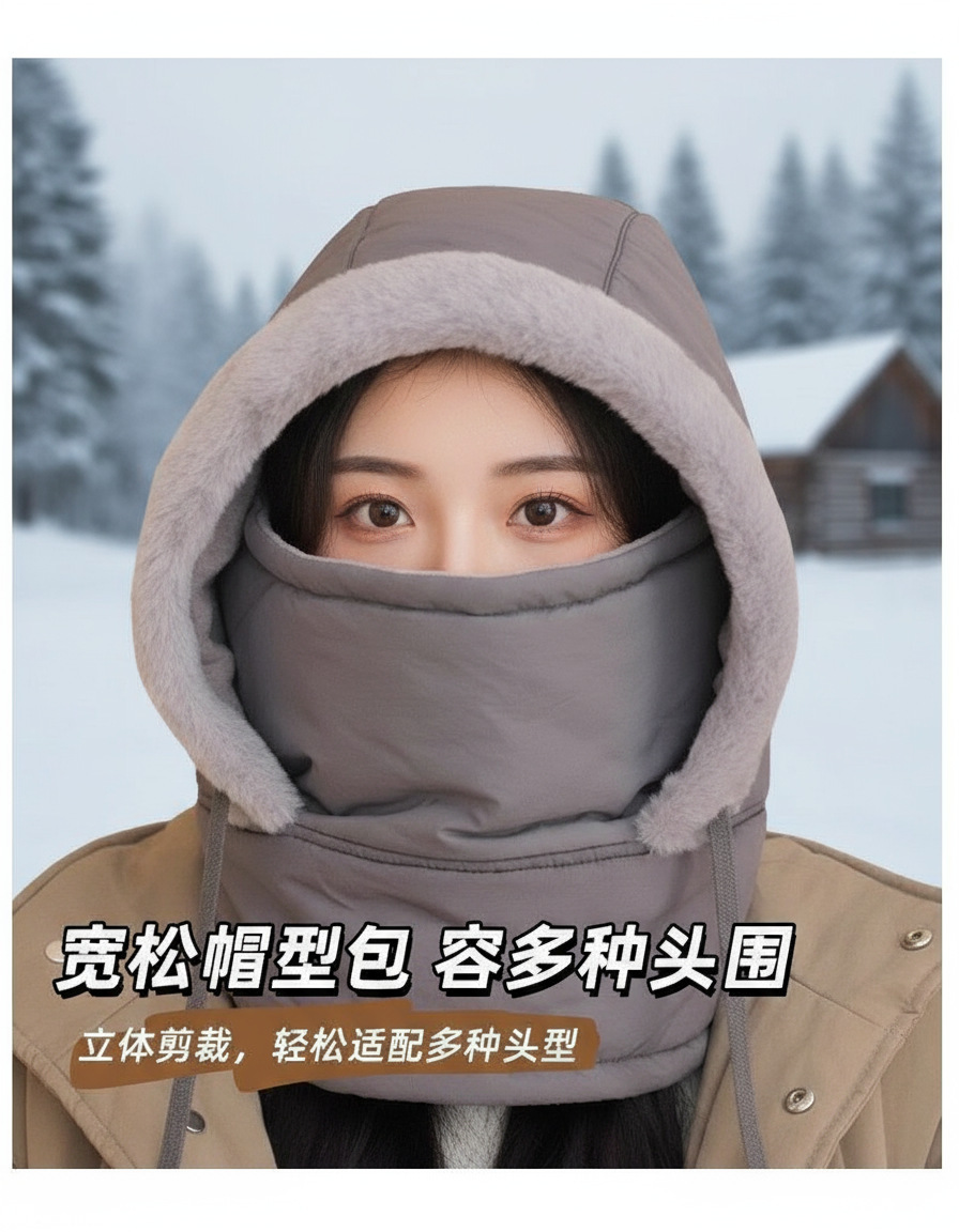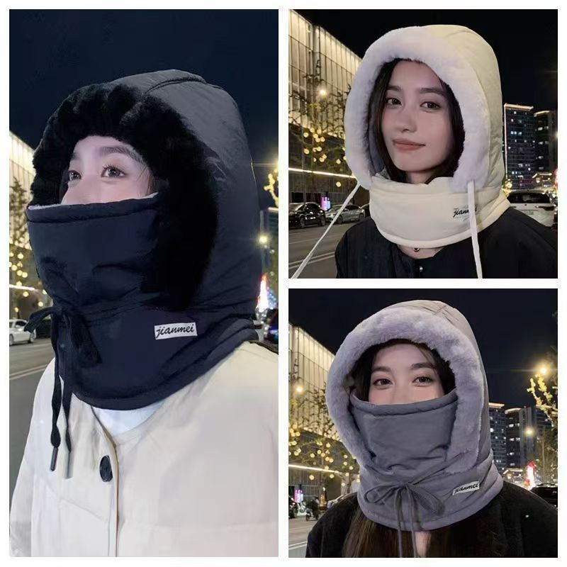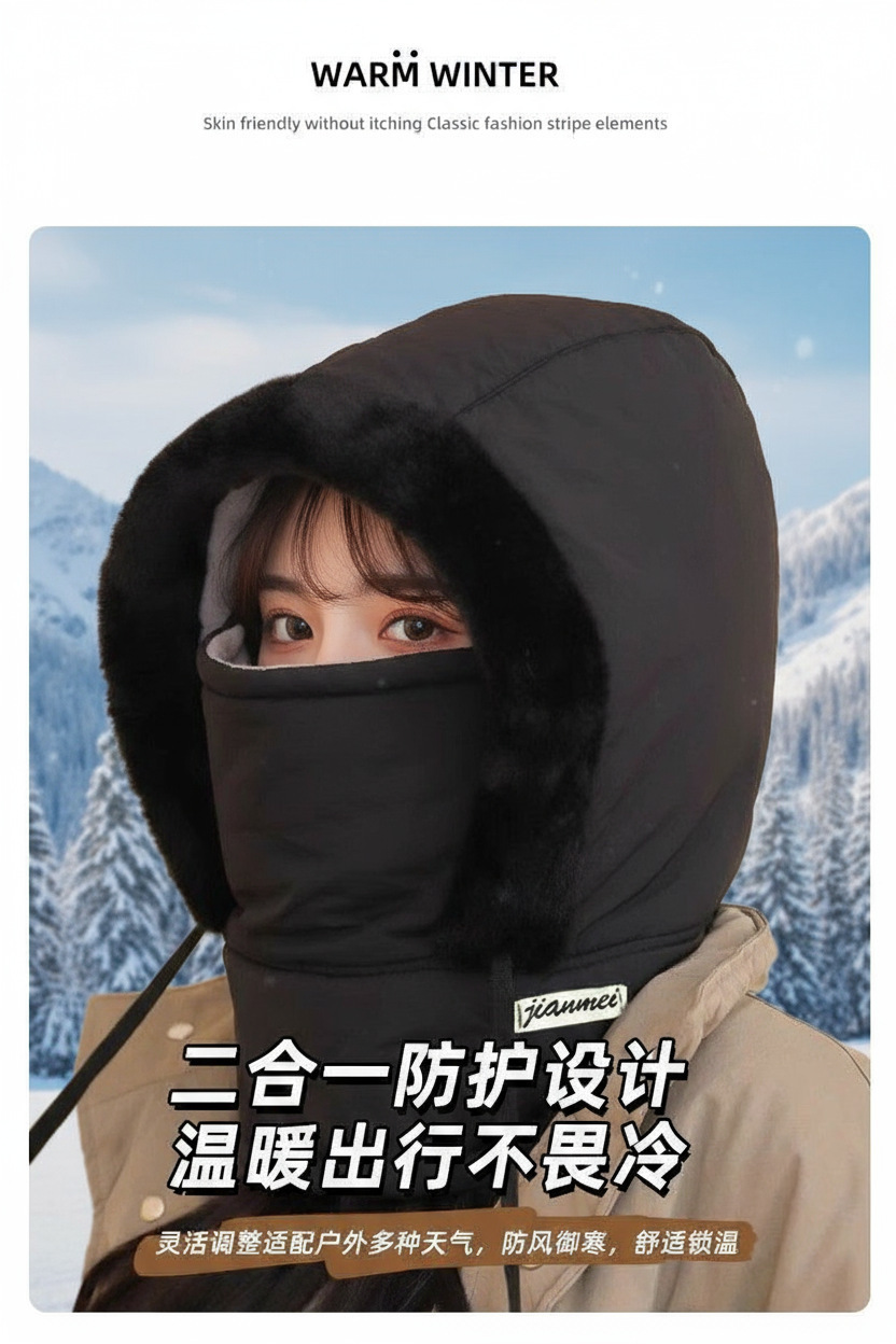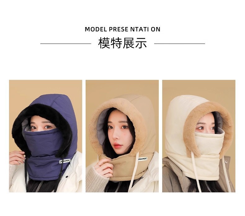 秋冬季加绒护耳保暖雷锋帽子女电动车骑行防风防寒面罩围脖一体帽 English | 投诉