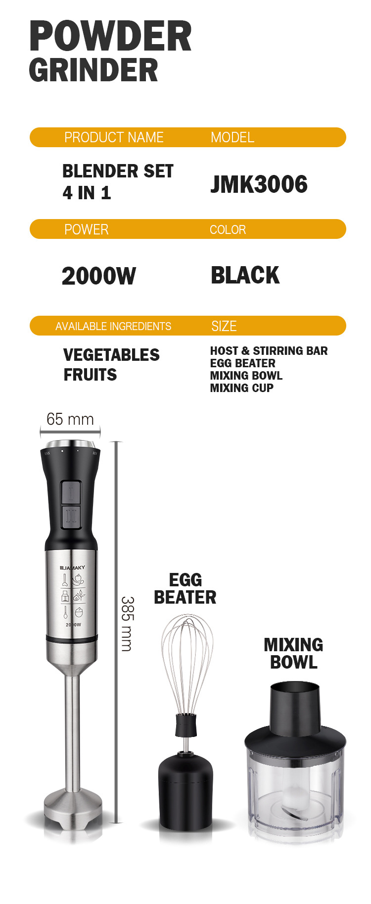 配件:700mlPP杯+不锈钢打蛋器 +350ml绞肉杯