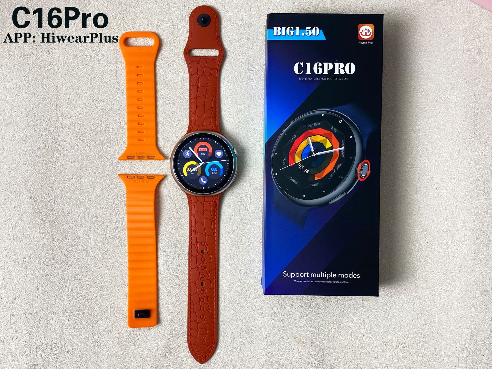 跨境新款c16pro智能手表蓝牙通话运动计步心率监测圆款手表智能 English | 投诉