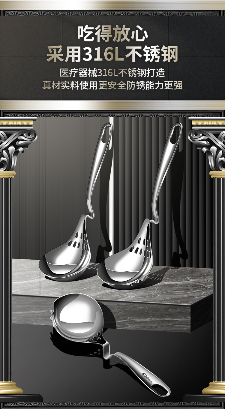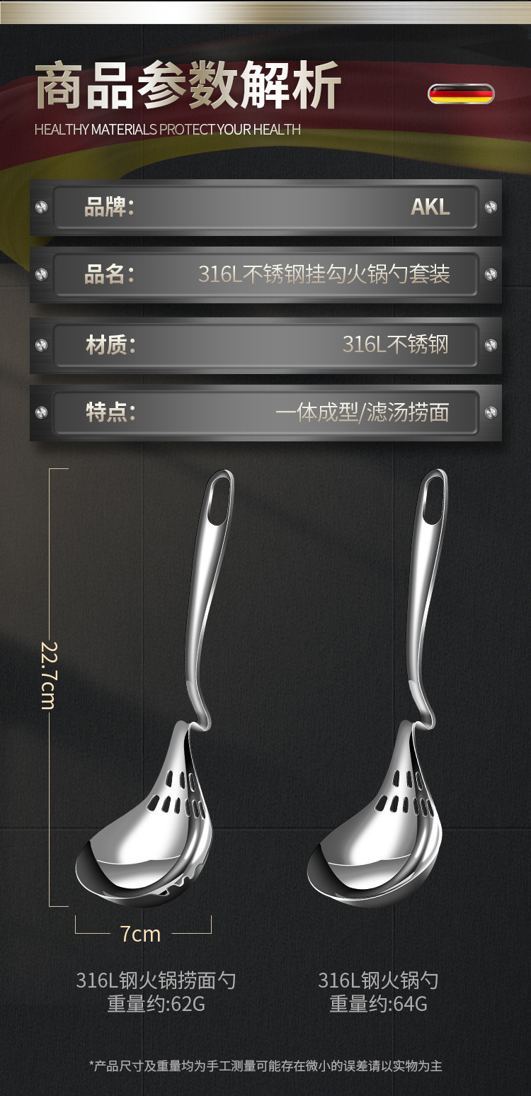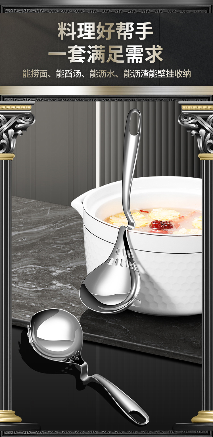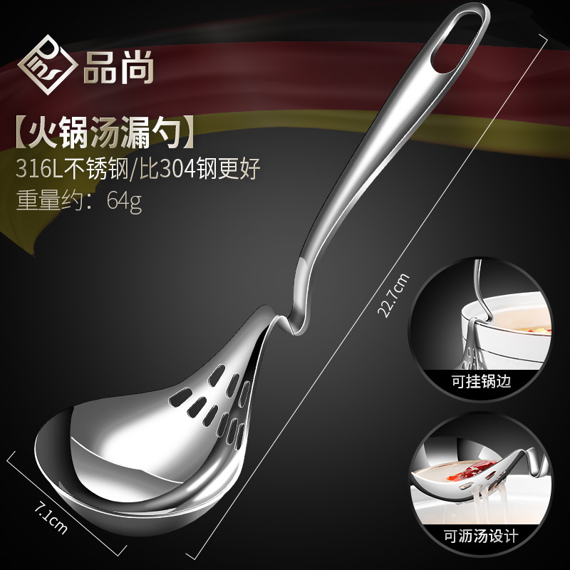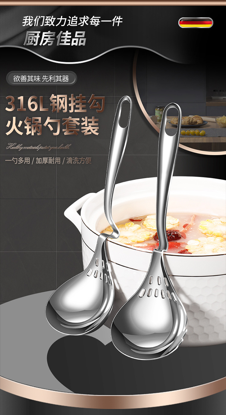 316L不锈钢挂壁火锅勺家用厨房汤勺漏勺多用途加厚带挂钩烹饪勺子 投诉