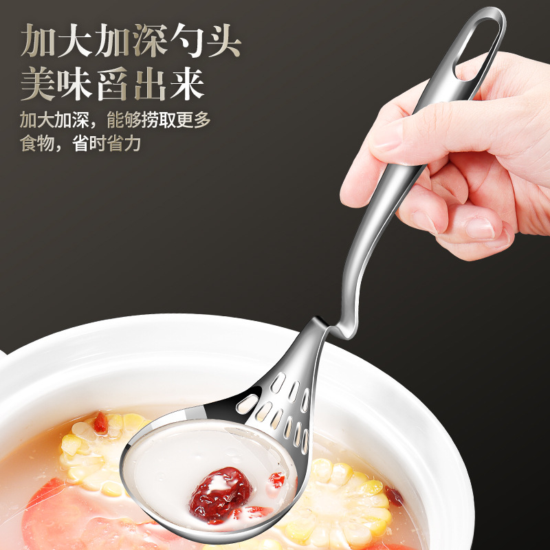 316L不锈钢挂壁火锅勺家用厨房汤勺漏勺多用途加厚带挂钩烹饪勺子