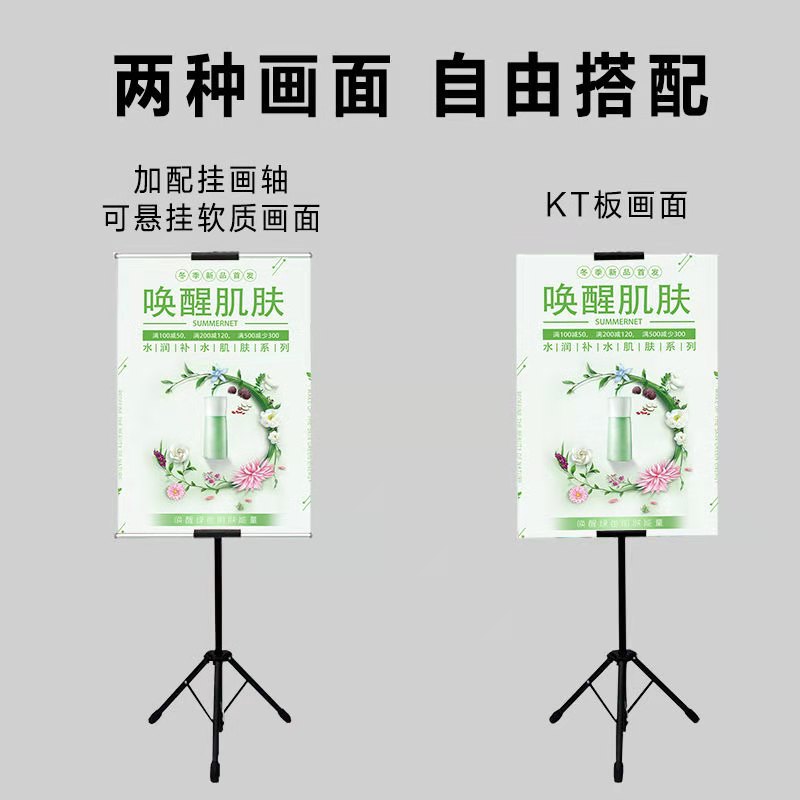 铁质三角POP立式挂画架卷轴KT板海报展示架升降调节广告架便携 English | 投诉