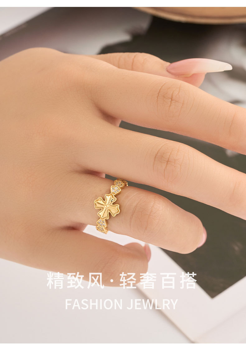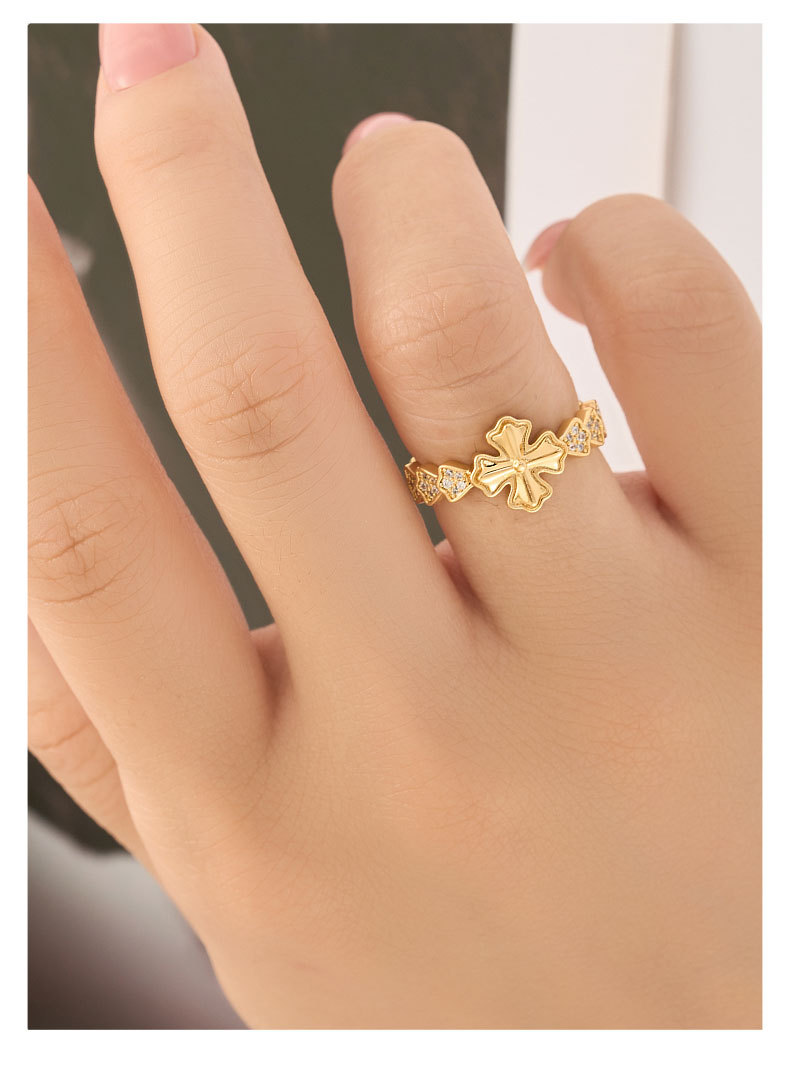 潮流魅力精致十字开口戒指时尚简约微镶锆石指环新款可调节食指戒