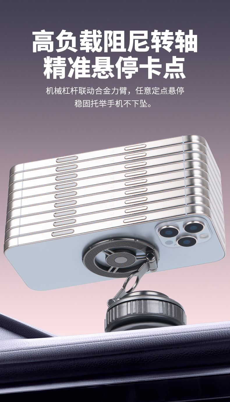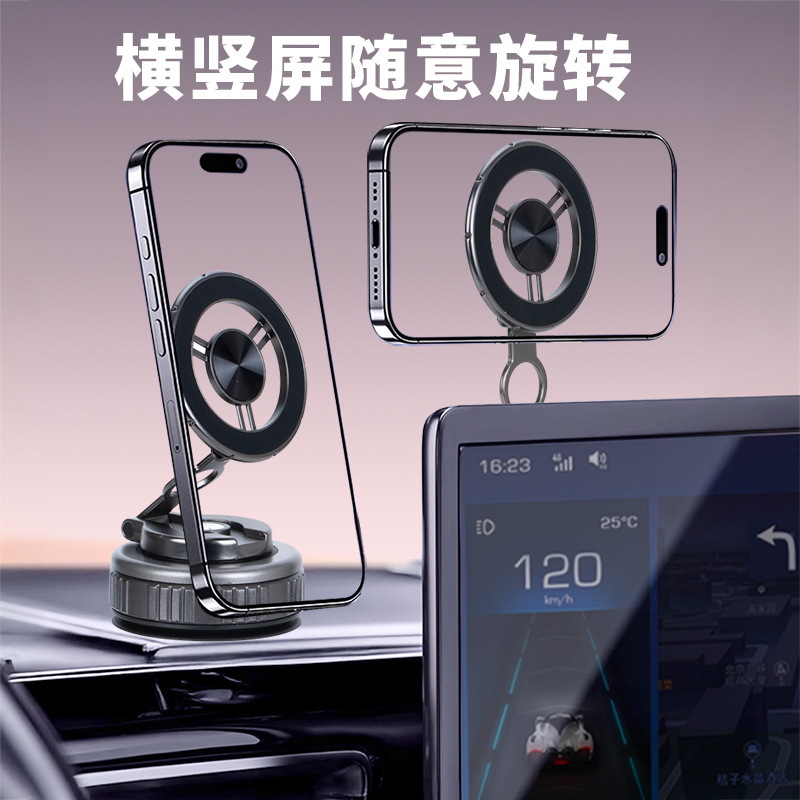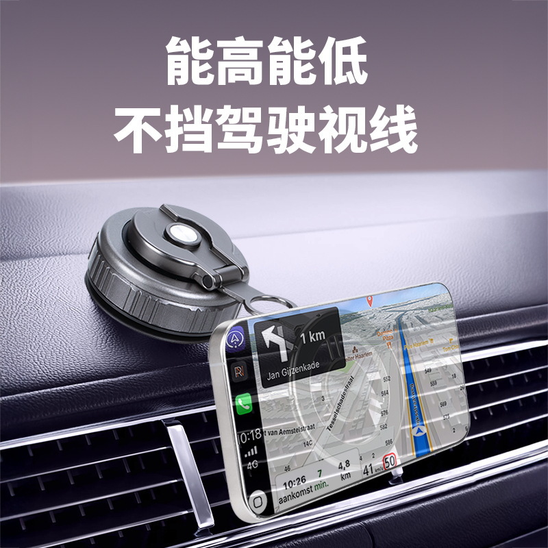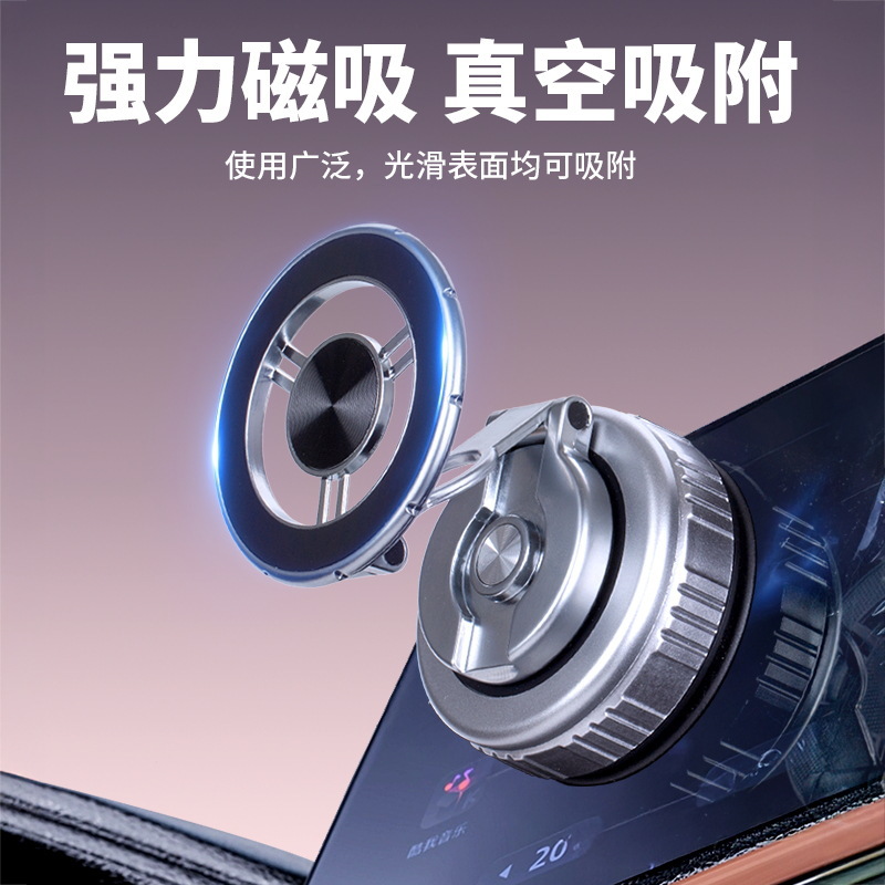 新款真空吸附车载手机支架爆款折叠真空磁吸汽车导航吸盘手机支架