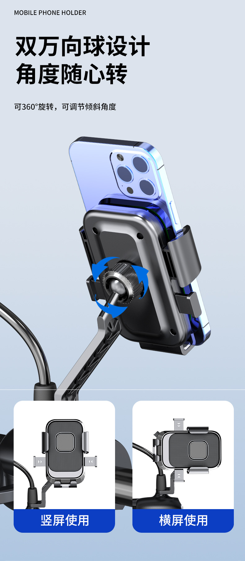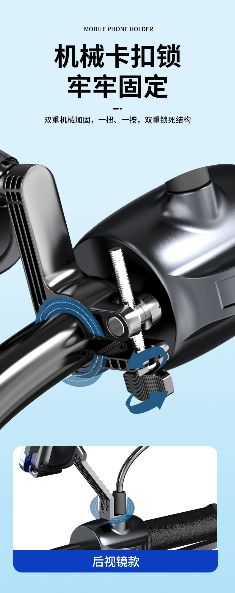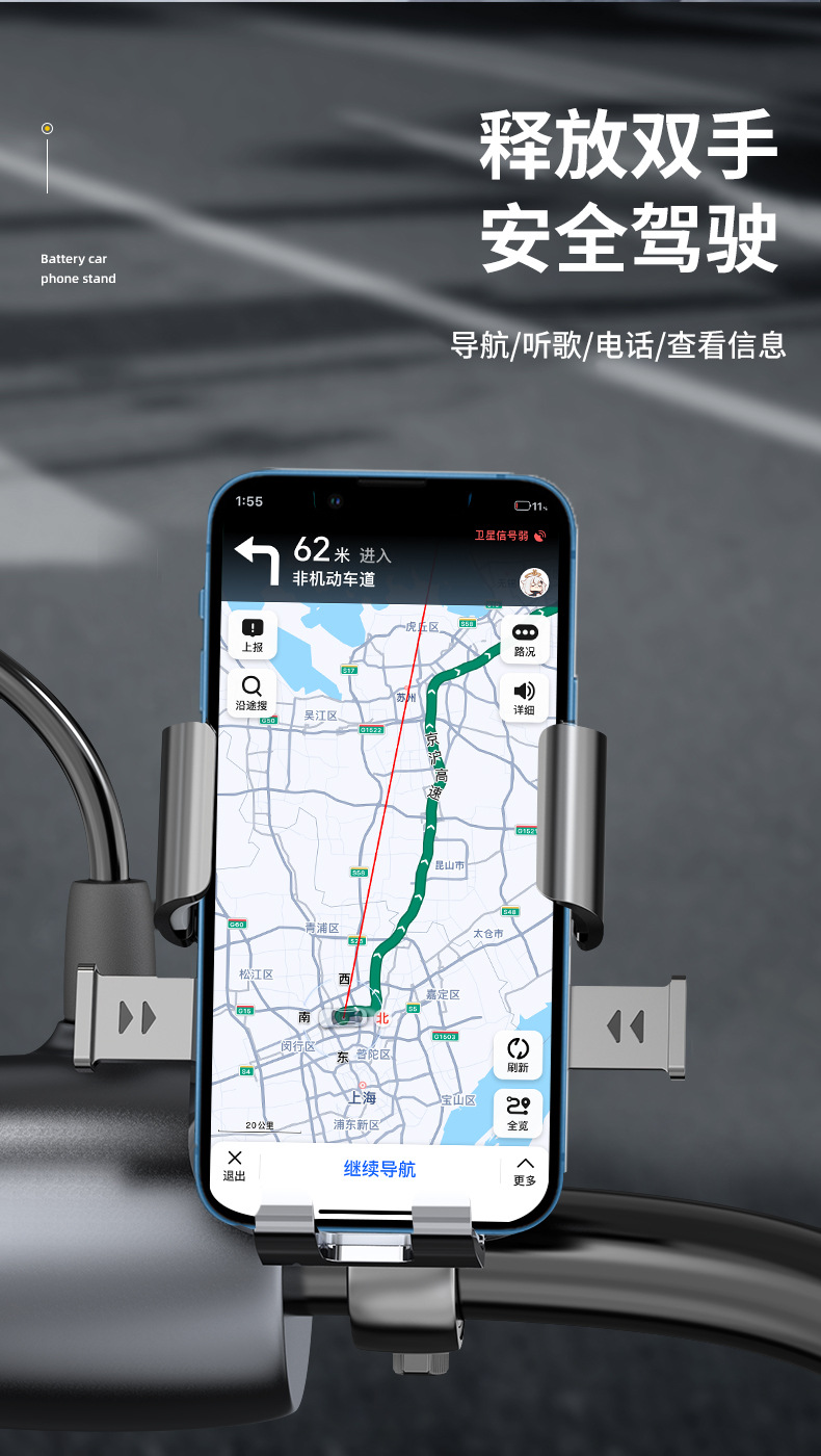 新款电动车摩托车后视镜手机支架户外骑行防震自行车导航支架工厂 English | 投诉