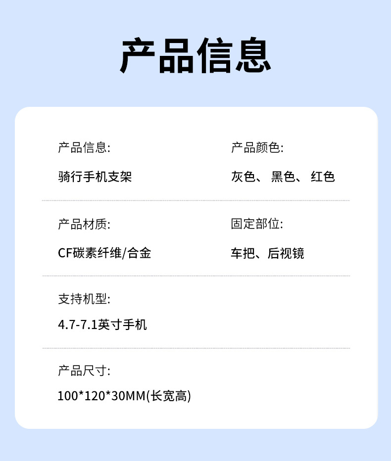 类型: 骑行支架 材质: 塑料 品牌: 文西 支持订制: 支持 风格: 通用 货号: 088/089 颜色: 车把款,后视镜款 主要销售地区: 非洲,欧洲,南美,东南亚,北美,东北亚, 有可授权的自有品牌: 否 是否专利货源: 否