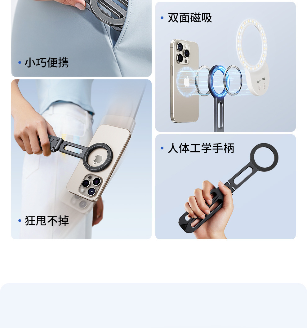 跨境爆款铝合金磁吸手机支架可折叠多功能手机支架直播三脚手机架 English | 投诉