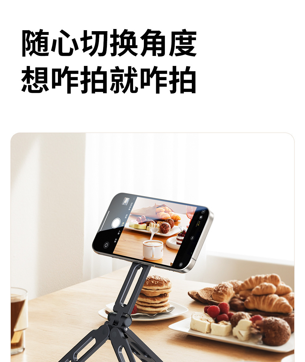 跨境爆款铝合金磁吸手机支架可折叠多功能手机支架直播三脚手机架