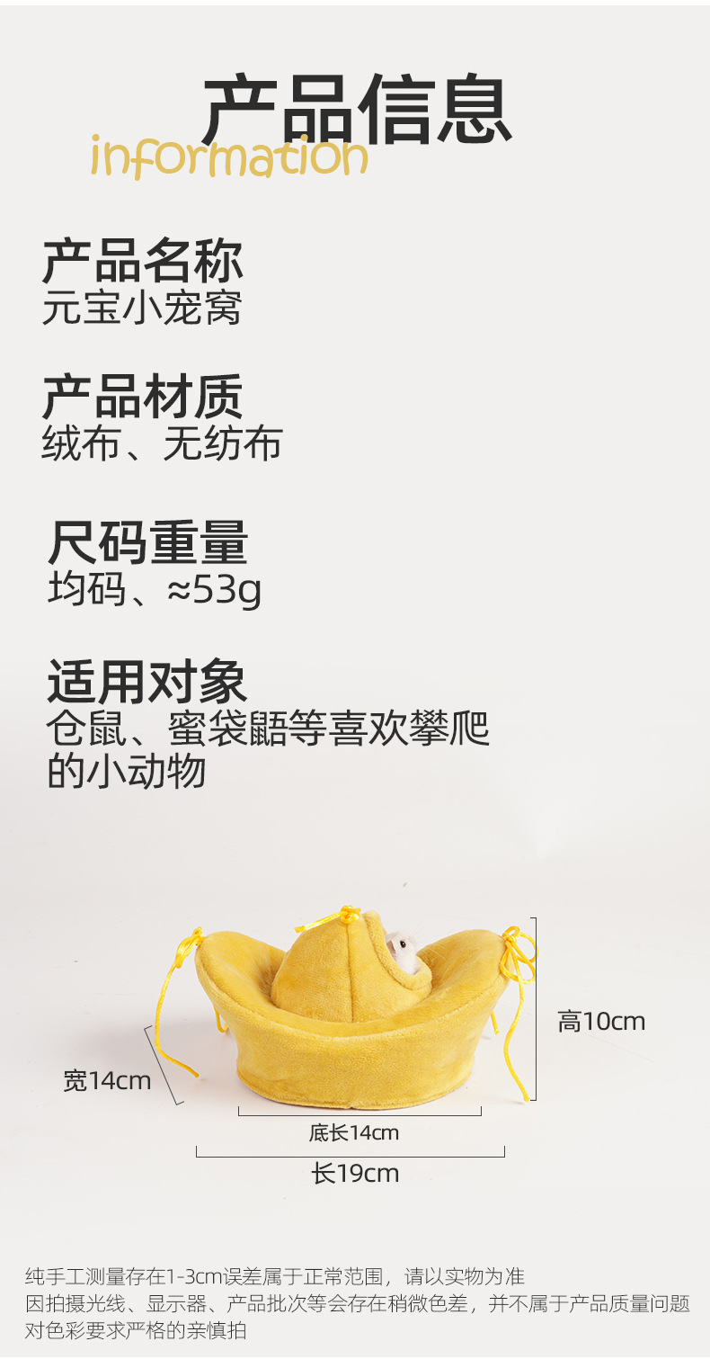 冬季保暖防风窝可悬挂吊床金丝熊新春大发财仓鼠元宝宠物窝小仓鼠 投诉