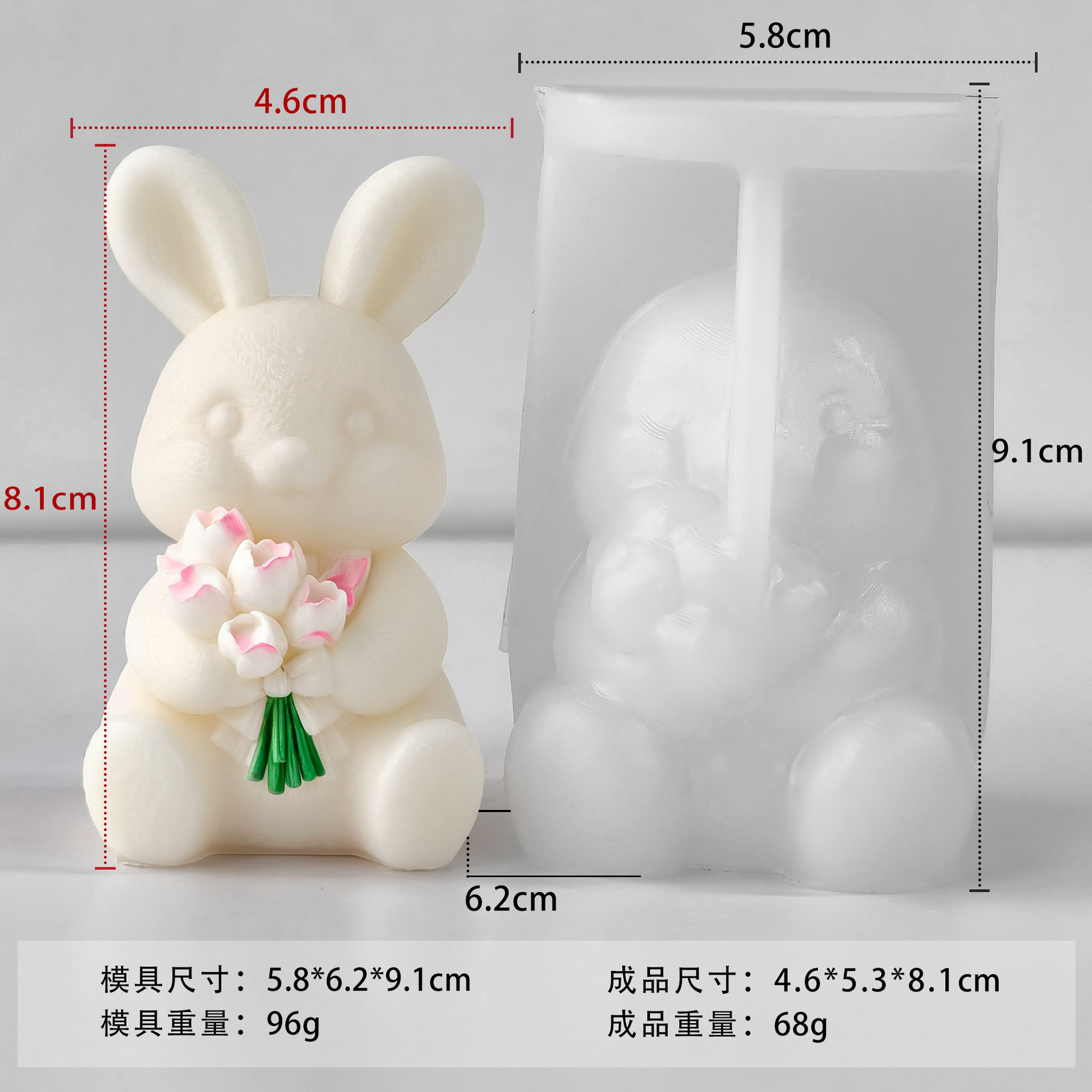 跨境兔子蜡烛硅胶模具可爱小兔子diy复活节香薰蜡烛摆件磨具