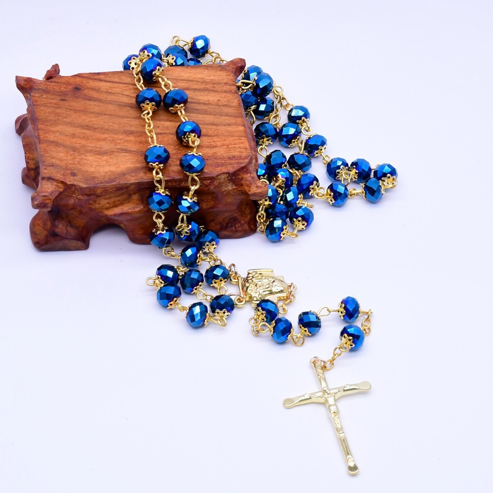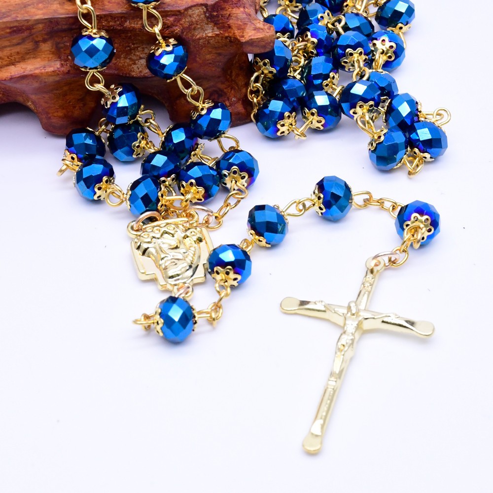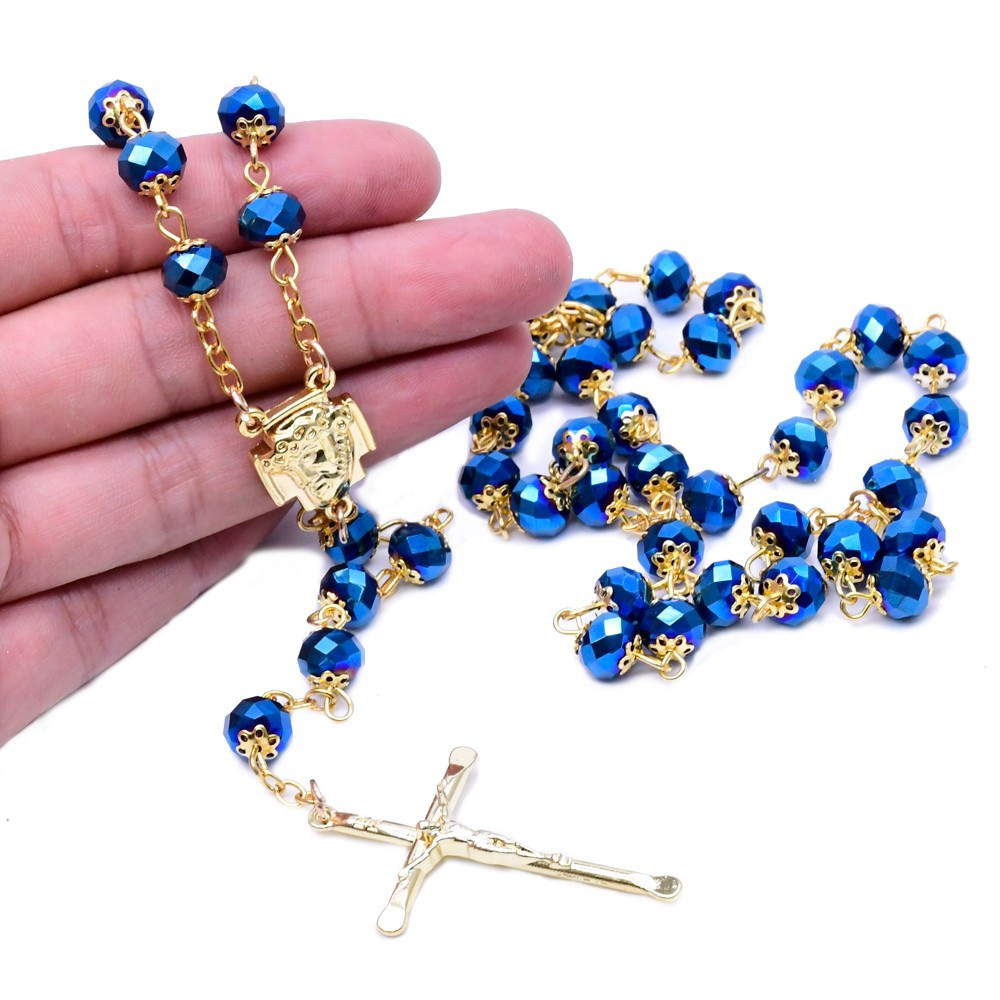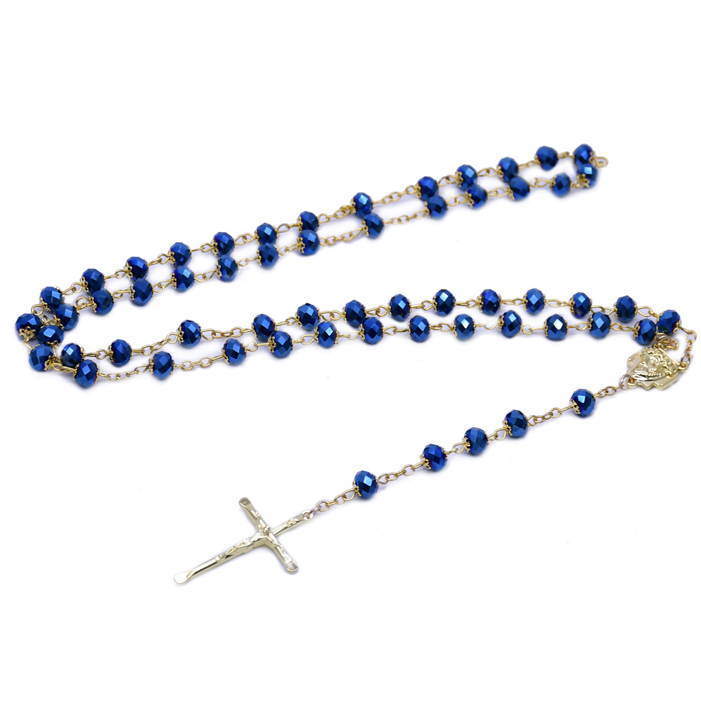 水晶花托十字架念珠项链