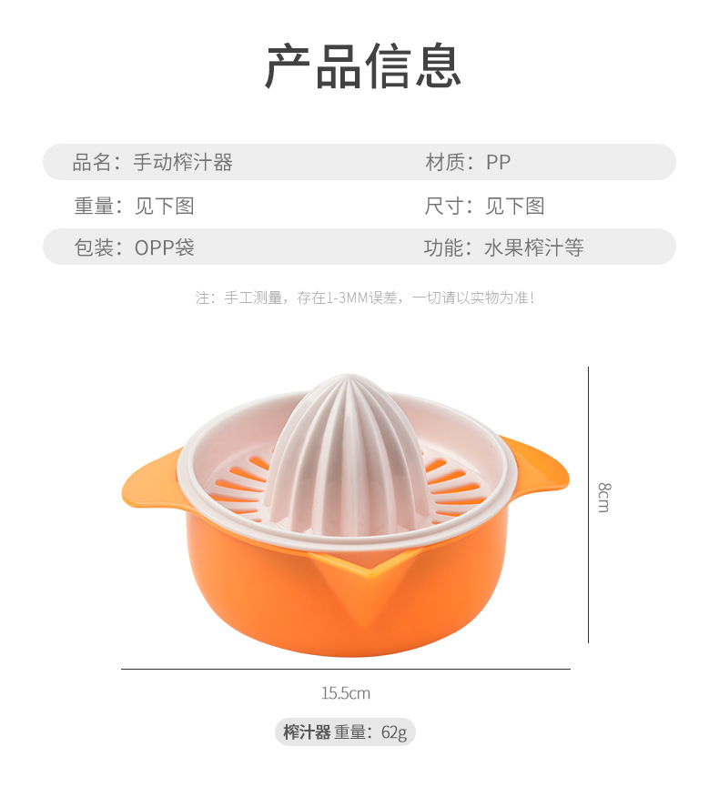 功能: 其他 品牌: 其他 风格: 现代简约 货号: 手动榨汁器 是否进口: 否 产品上市时间: 2024 规格: 见详情 加工定制: 是 重量: 0.2 kg/个