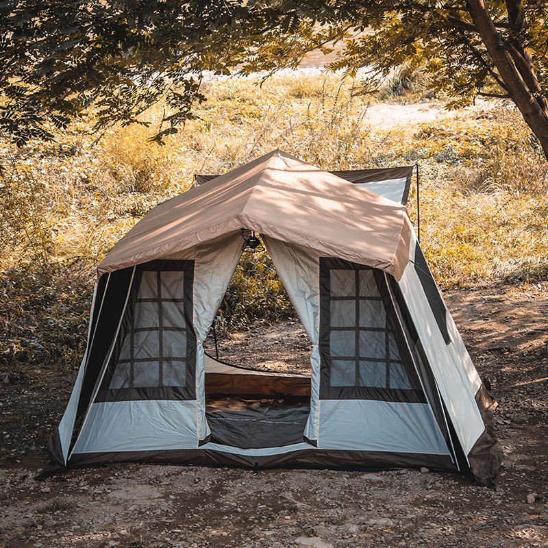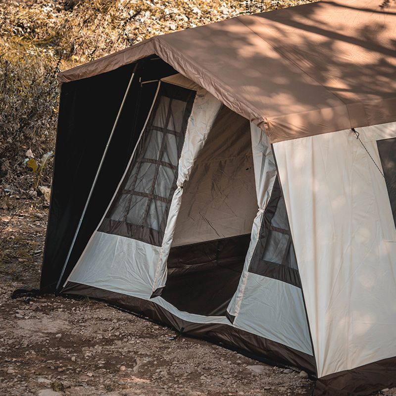 品牌 CHANODUG夏诺多吉品名 黑胶双层小屋帐篷 型号:CD-2070材质 外帐黑胶牛津布、内帐牛津布、钢管 重量 约18kg 尺寸 展开310*260*210cm 收纳82*52*26cm 颜色 卡其色