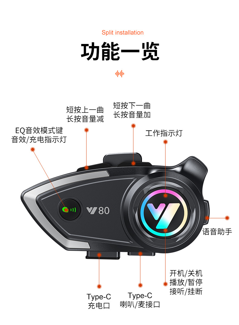 Y80头盔蓝牙耳机、有CE、FCC、SRRC、RHOS等认证,是Y系列源头生产厂家