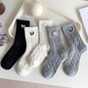 秋冬袜子女中筒袜甜美蝴蝶结堆堆袜纯色麻花纹韩版长袜纯色棉袜