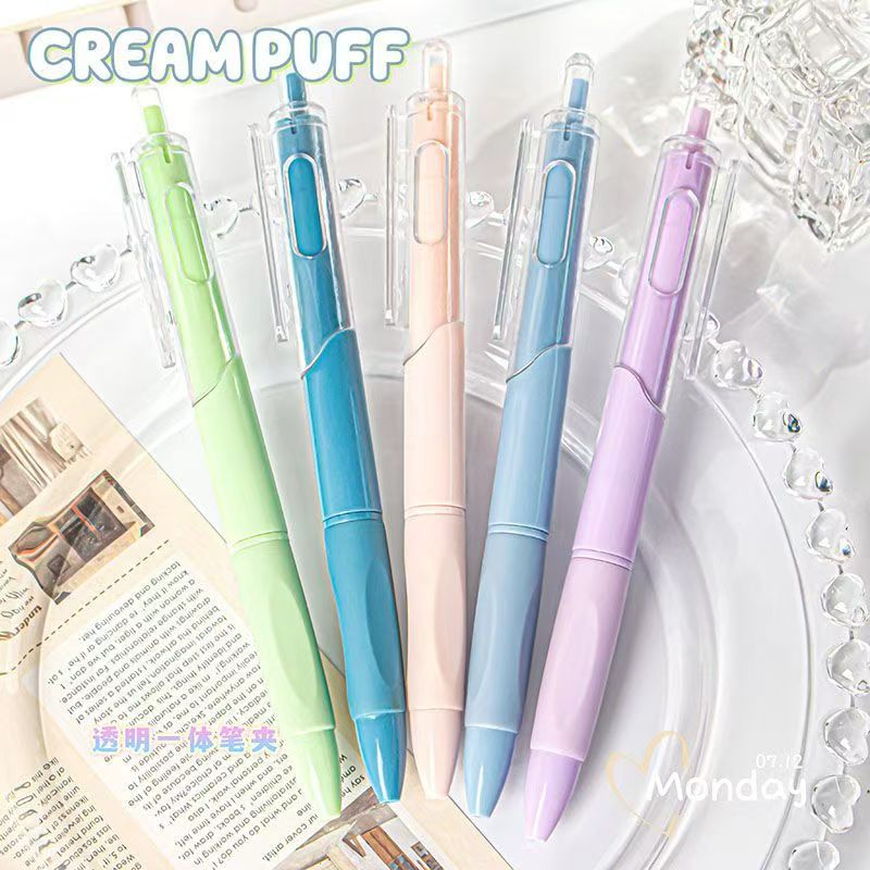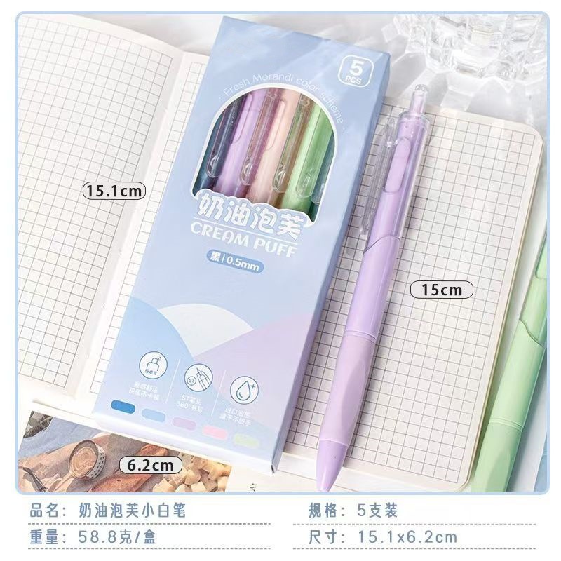 奶油泡芙莫兰迪按动中性笔st速干学生刷题笔高颜值小白笔考试黑笔 投诉