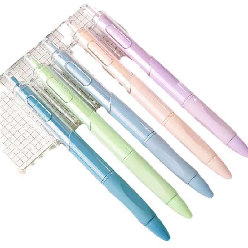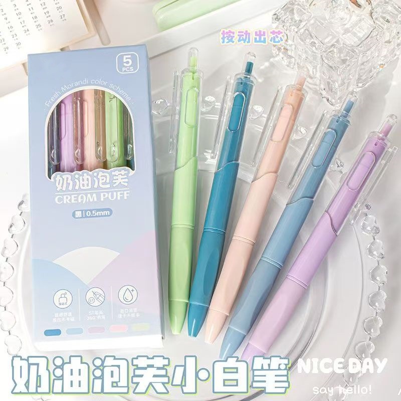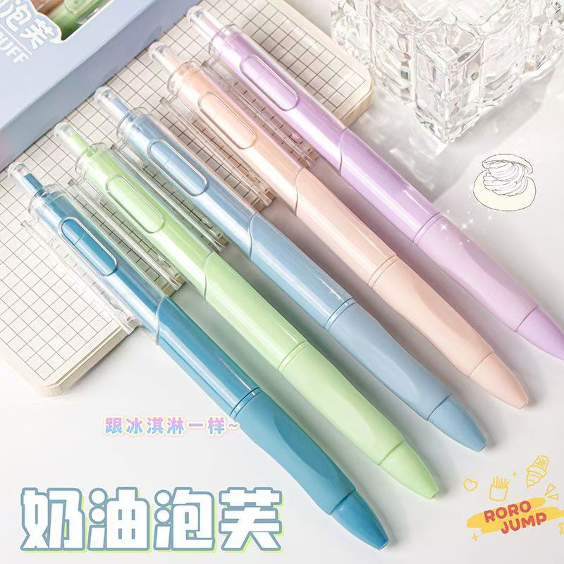 奶油泡芙莫兰迪按动中性笔st速干学生刷题笔高颜值小白笔考试黑笔