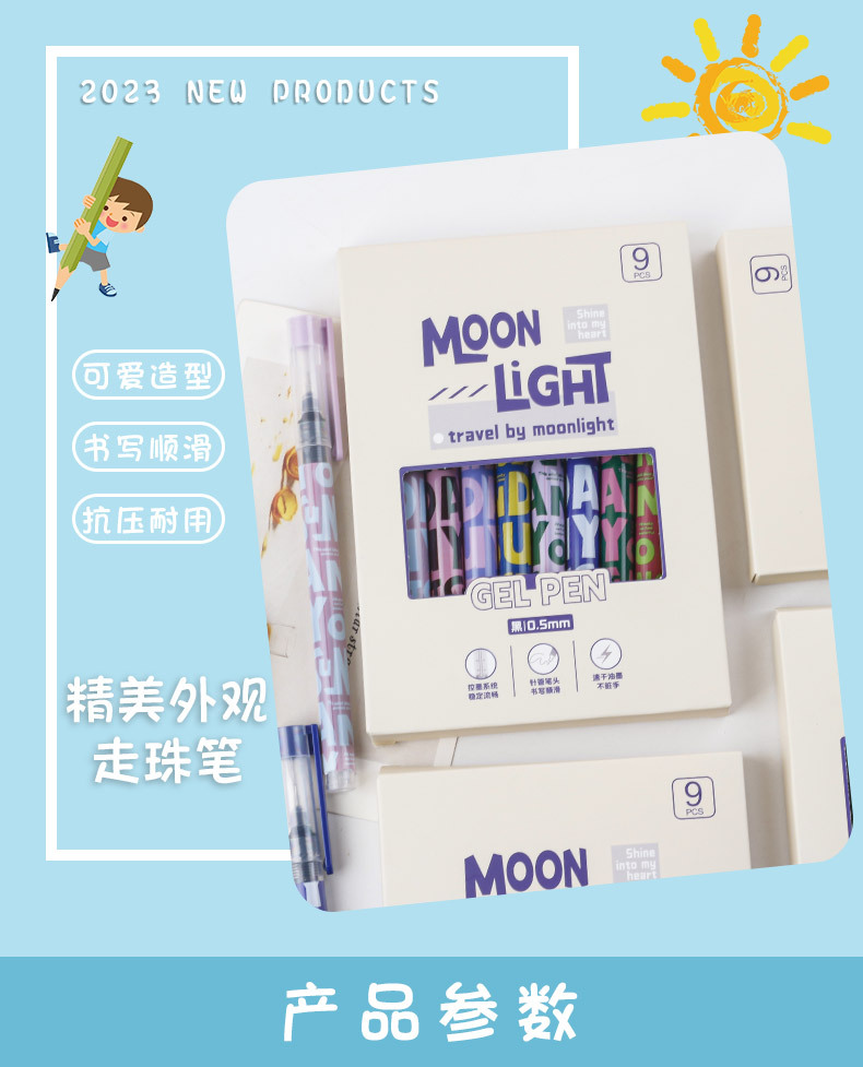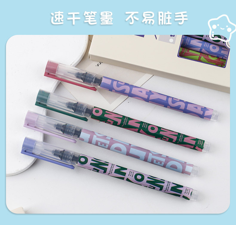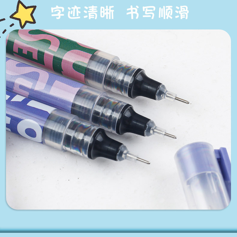 跨境爆款美式复古直液式速干走珠笔ins高颜值学生考试刷题笔黑笔