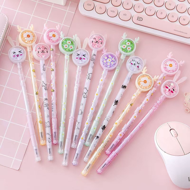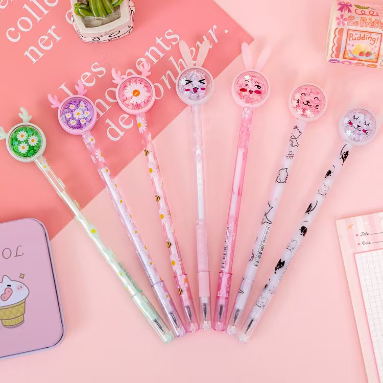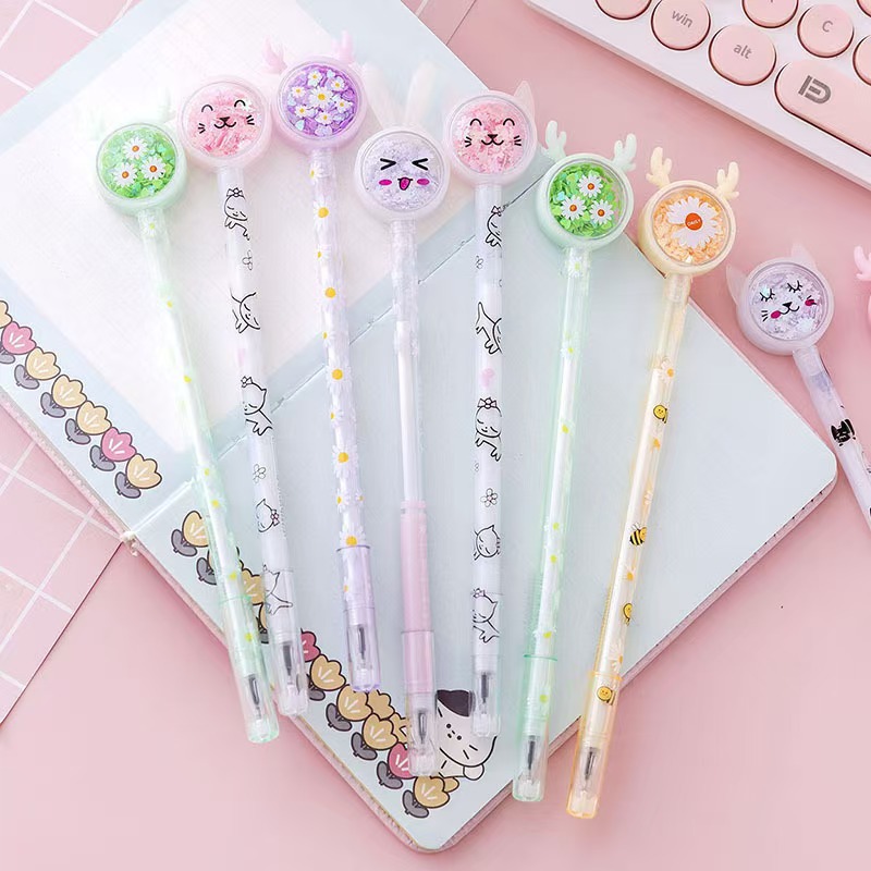 创意中性笔卡通亮片笔学生考试黑色水笔高颜值办公文具签字笔批发