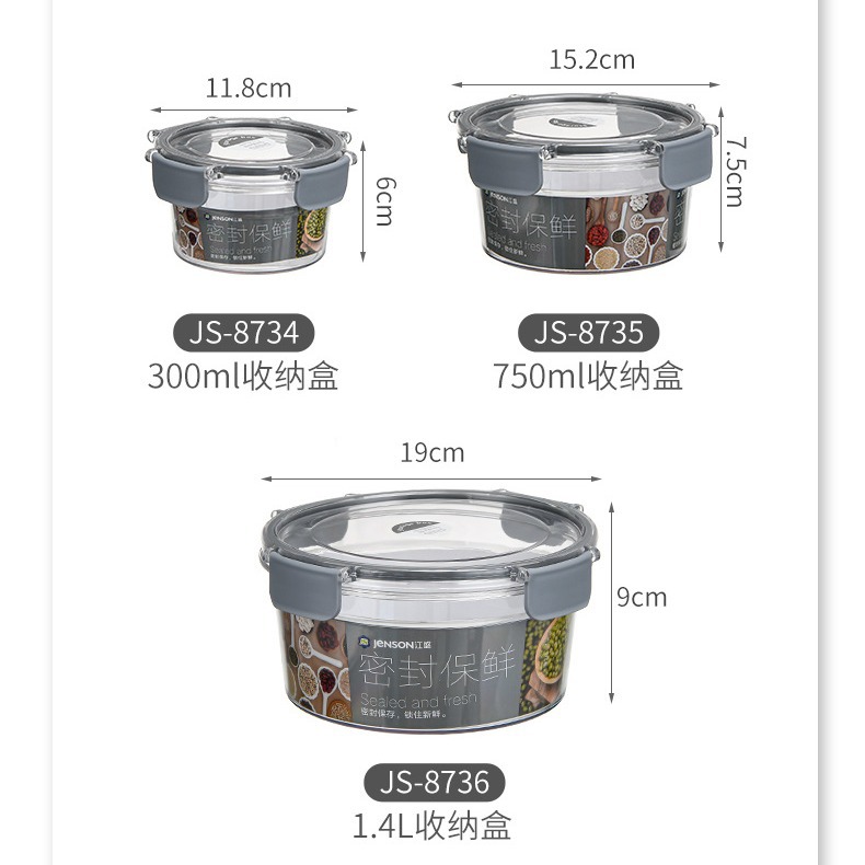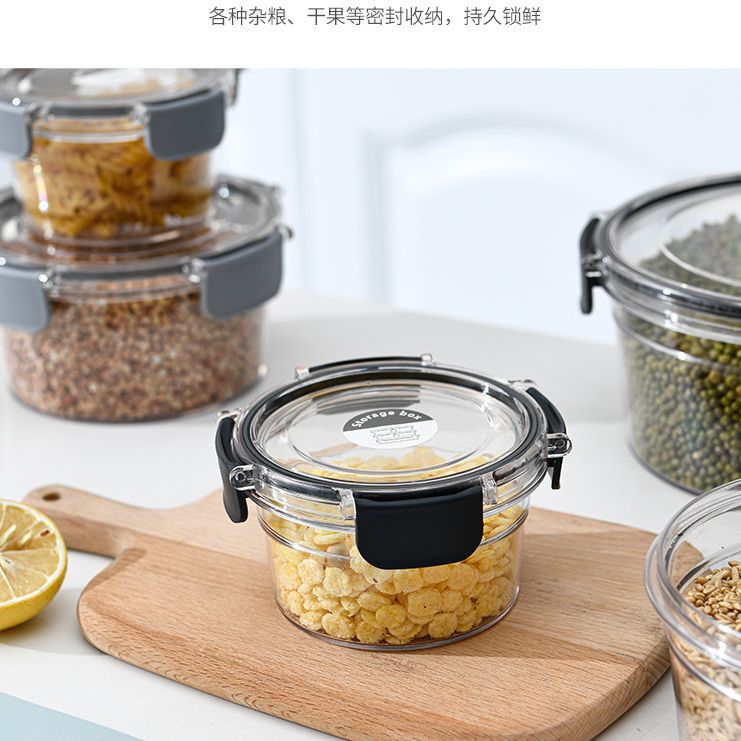 圆形杂粮密封罐 食品级PET透明带盖厨房储物五谷杂粮收纳盒储物罐 English | 投诉