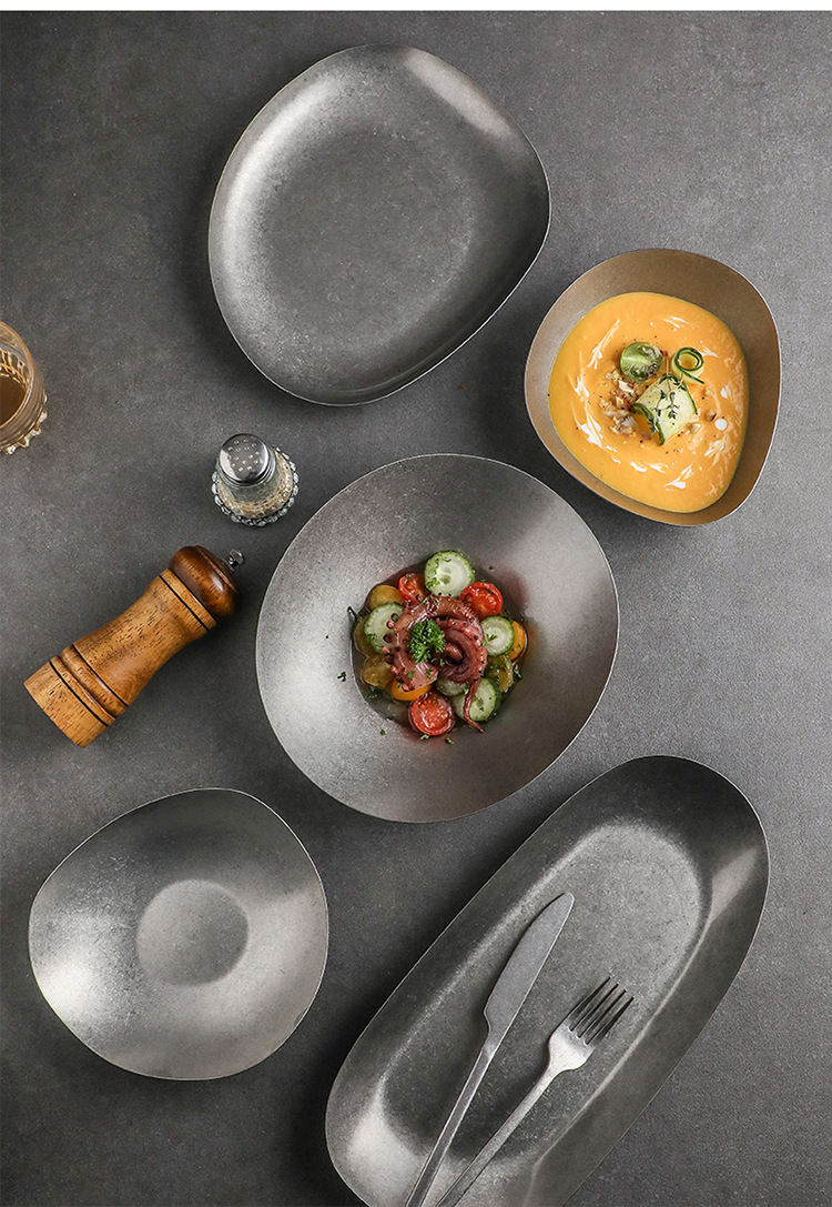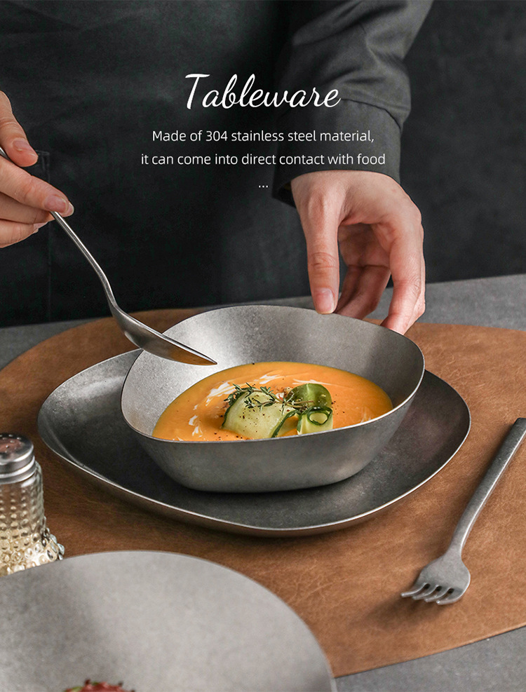 高级感304不锈钢食品级碗盘子复古装菜碗轻食碗多功能碗创意餐具 English | 投诉