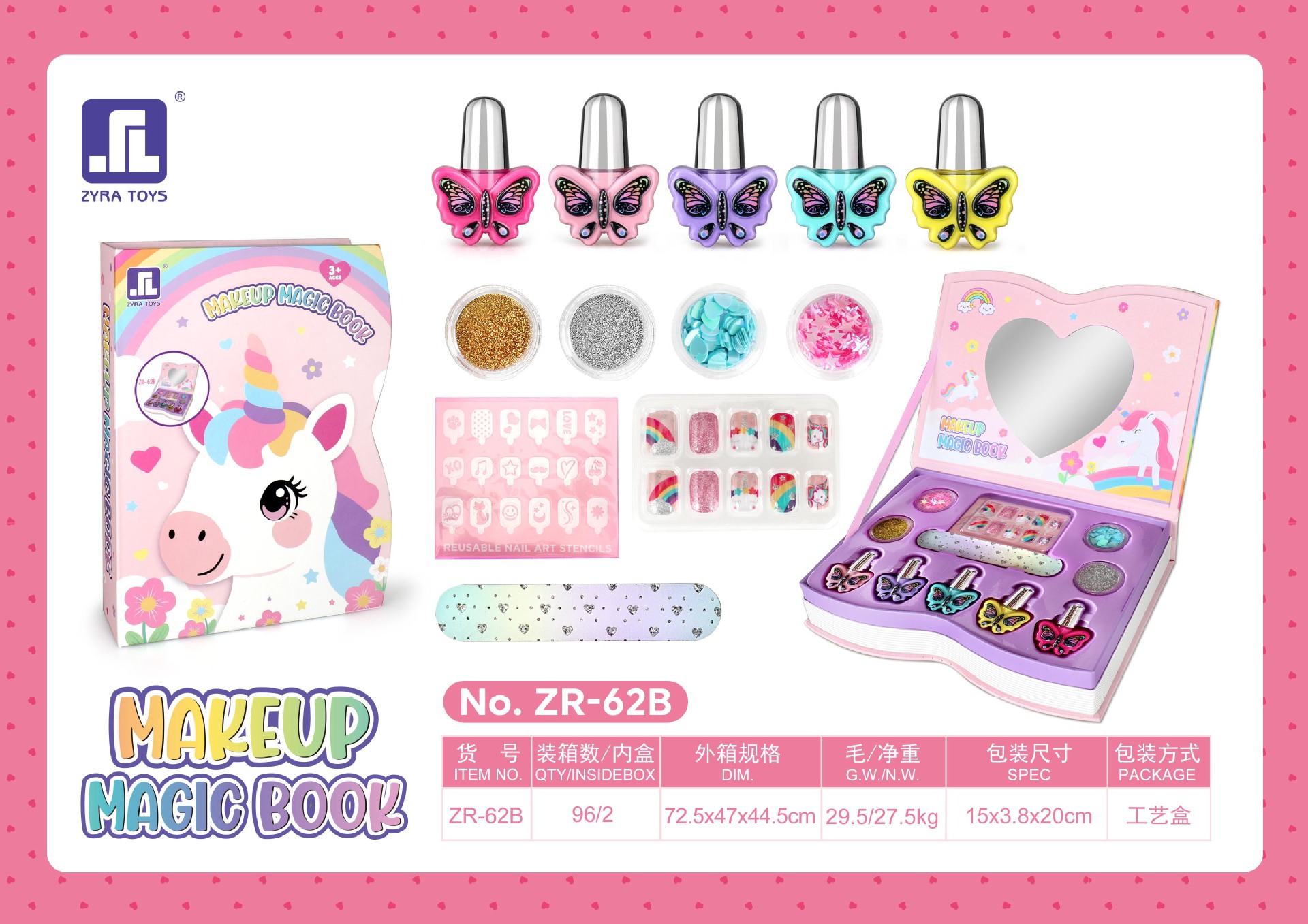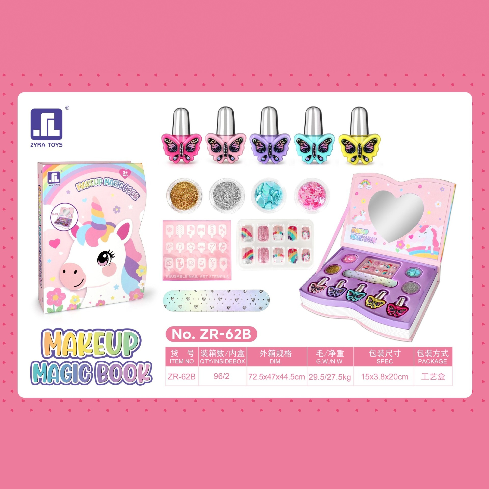 跨境儿童彩妆指甲油口红女孩化妆玩具小女孩化妆品彩妆盒生日礼物 English | 投诉