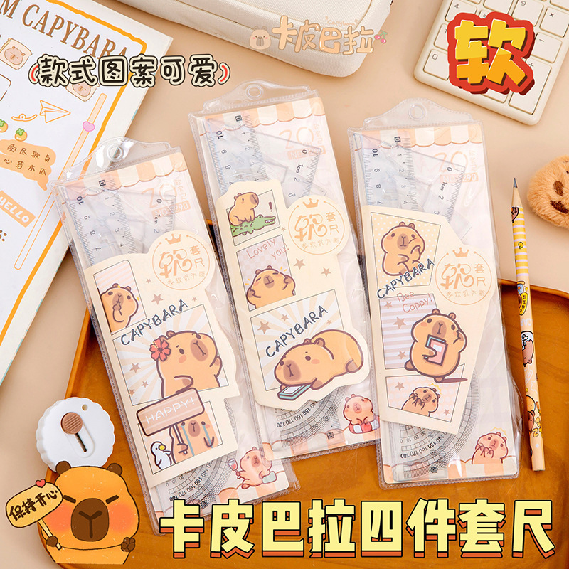 卡皮巴拉四件套装尺塑料软直尺三角尺量角器学生绘图美术尺子批发