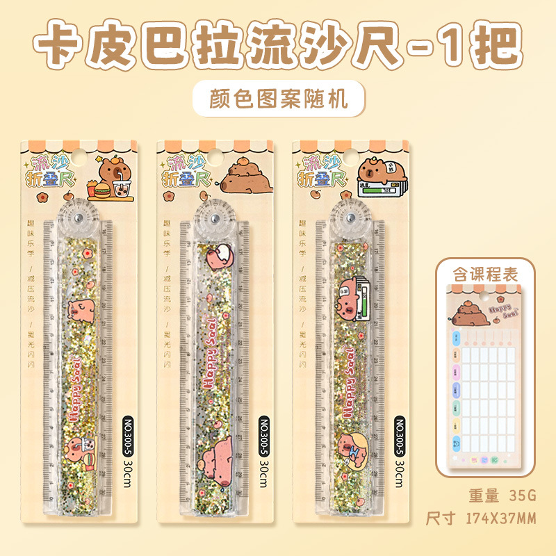 创意流沙折叠尺子多功能学生绘画横线直尺卡通30cm折尺文具用品
