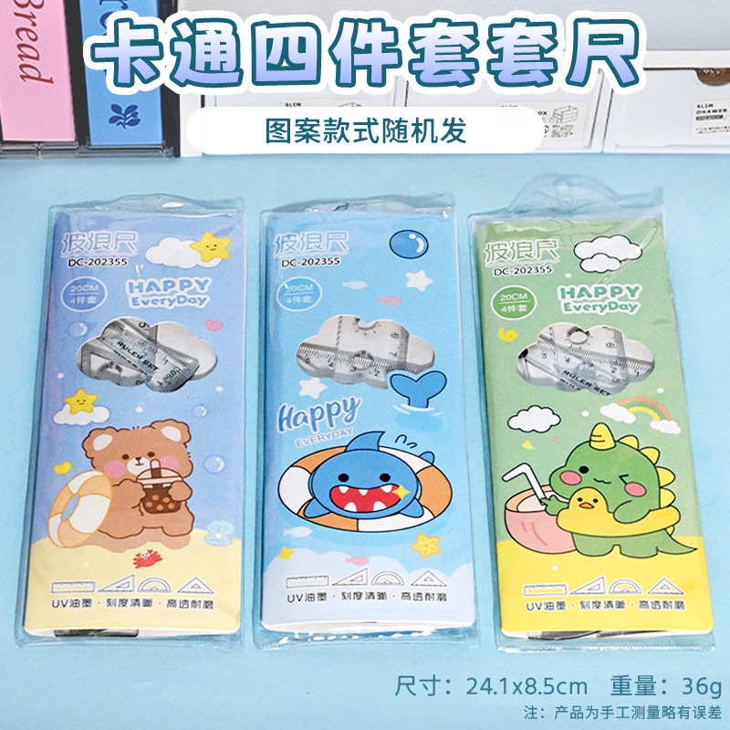 高颜值套尺四件套学生可爱尺子透明办公卡通文具套装初中学习批发 投诉