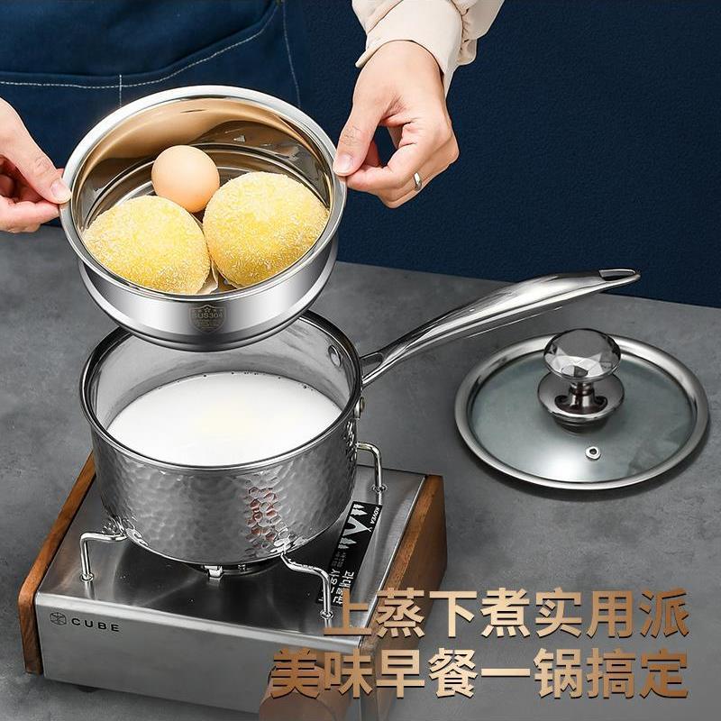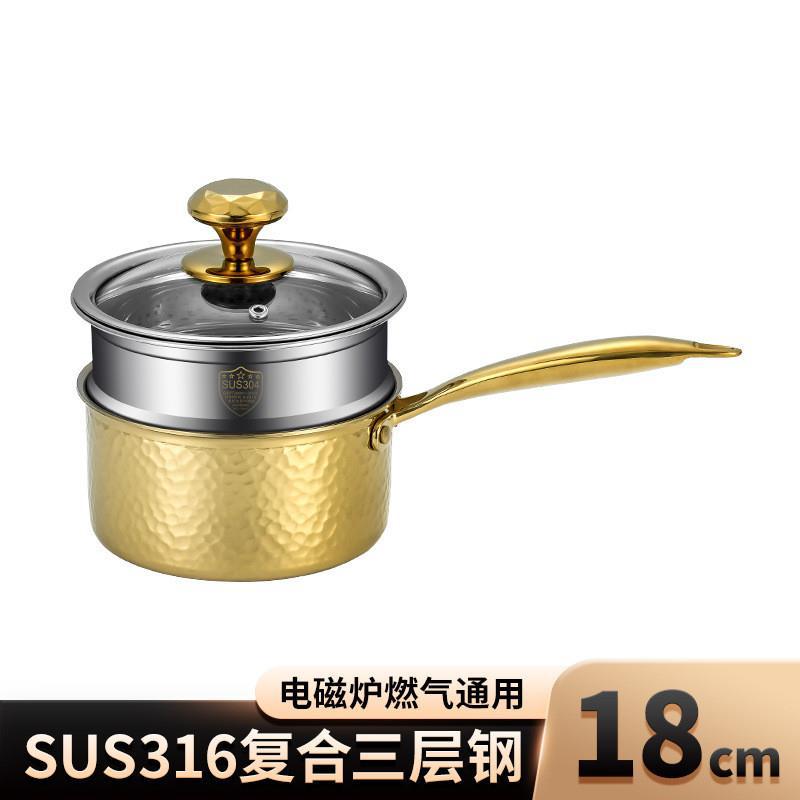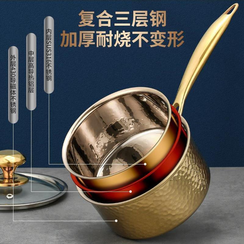 304加厚三层钢无涂层家用不挑炉灶辅食锅 婴儿宝宝专用带