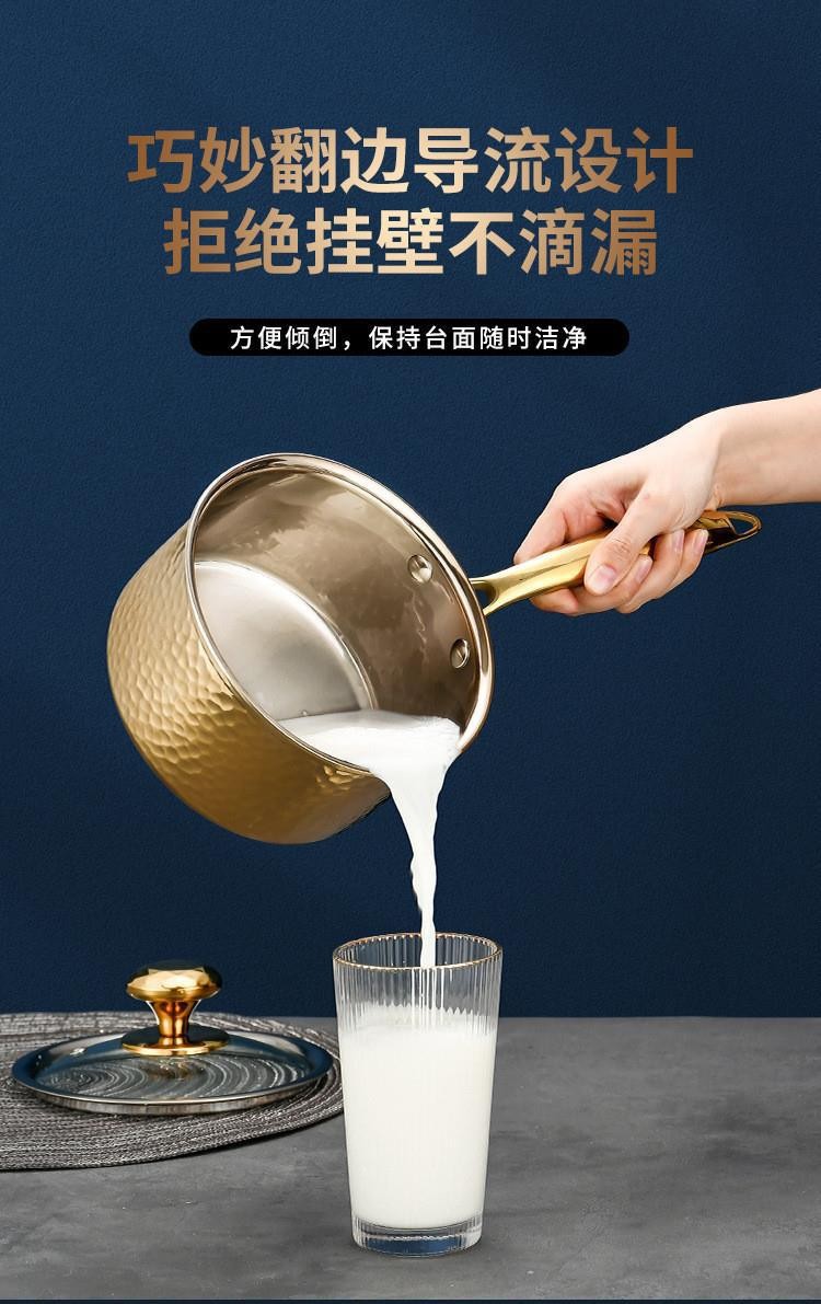材质: 304不锈钢 锅底材质: 三层底 品牌: JIANGHAO 特色: 无涂层锅 适用炉灶: 通用 货号: 锤纹奶锅 是否进口: 否 产地: 潮州 风格: 现代简约 贸易属性: 内贸 适用送礼场合: 婚庆,生日,节日,乔迁,其他 是否有专利: 无 规格: - 是否电动: 否 版权: 无