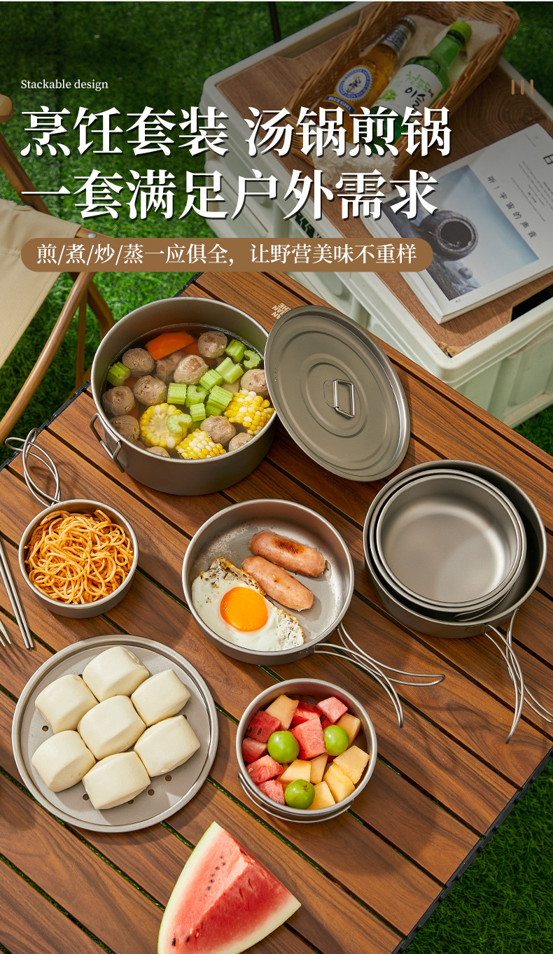 户外钛锅纯钛汤锅露营炊具超轻餐具煎锅钛合金折叠套锅泡面锅具 English | 投诉