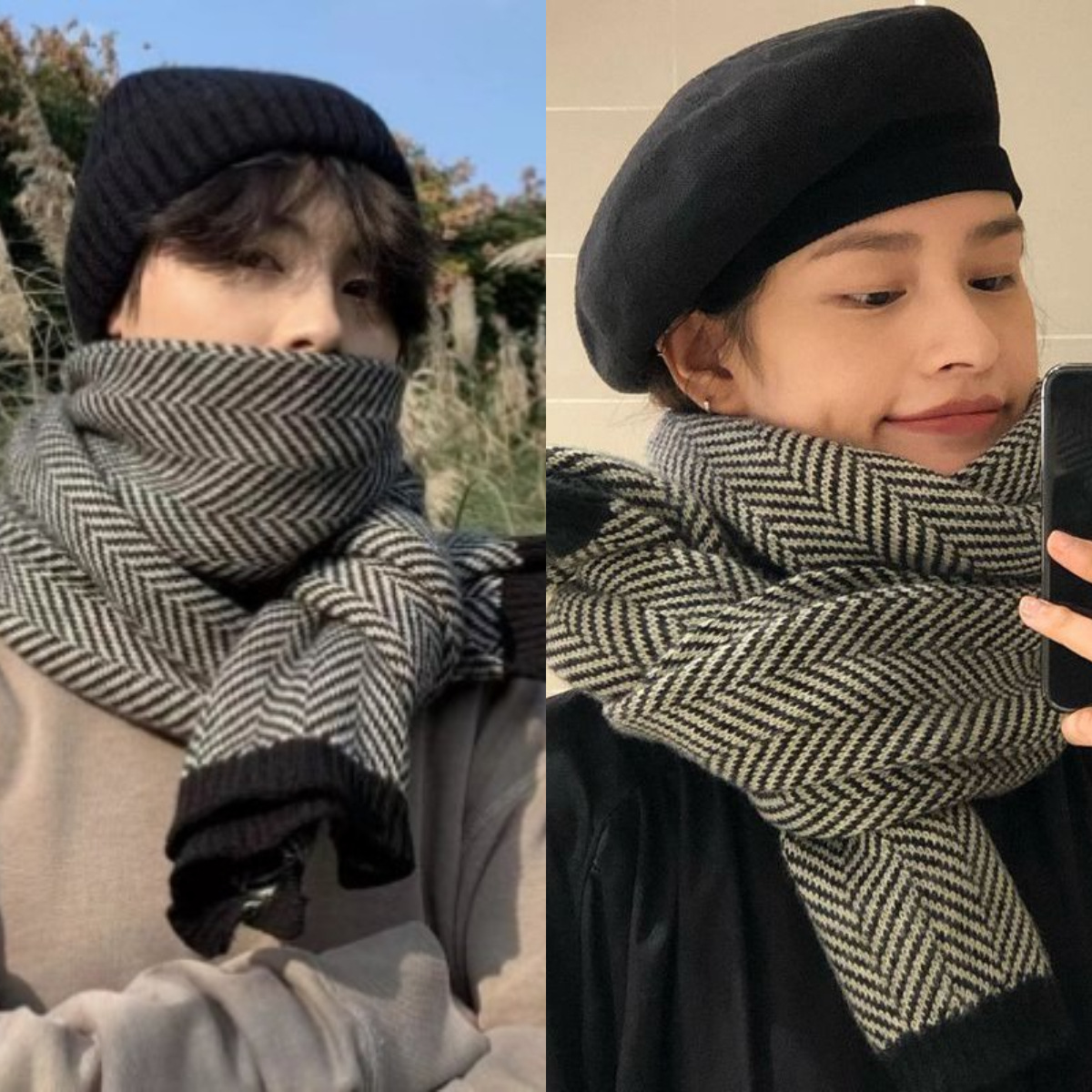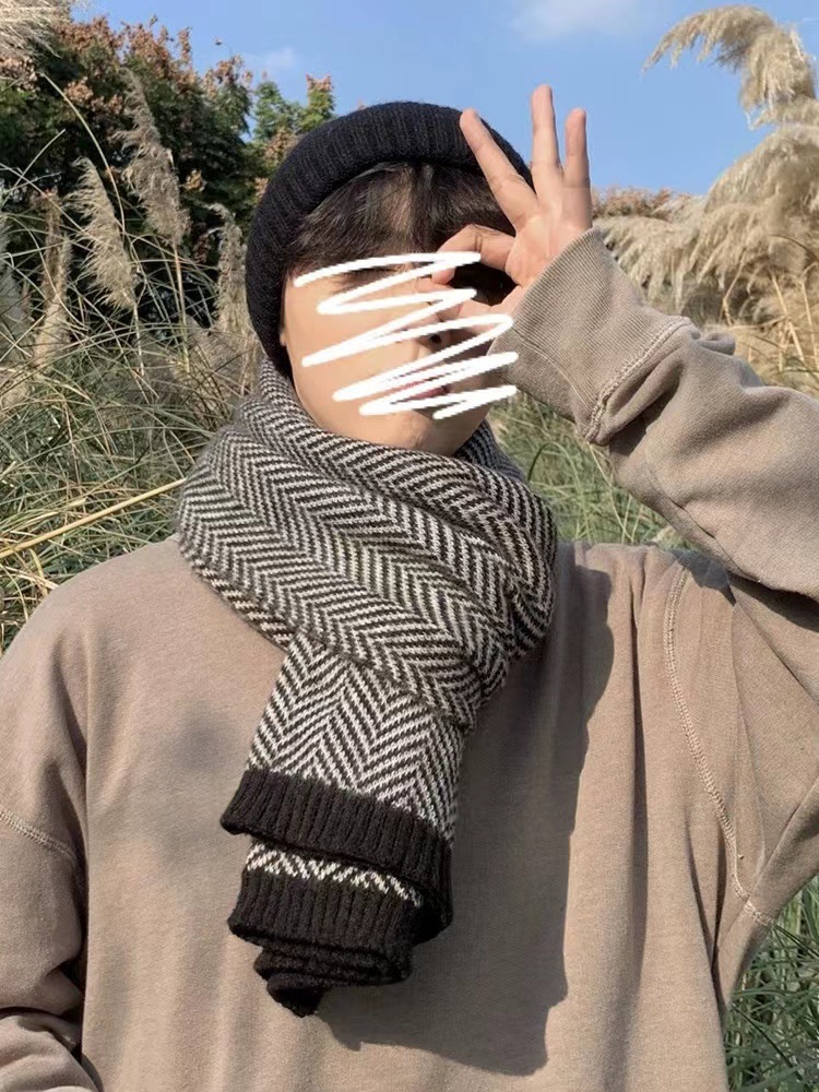 冬季男款围巾人字纹情侣百搭针织毛线保暖加厚菱格纹围脖时尚百搭 投诉