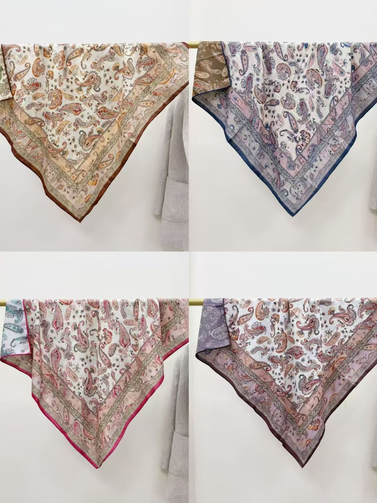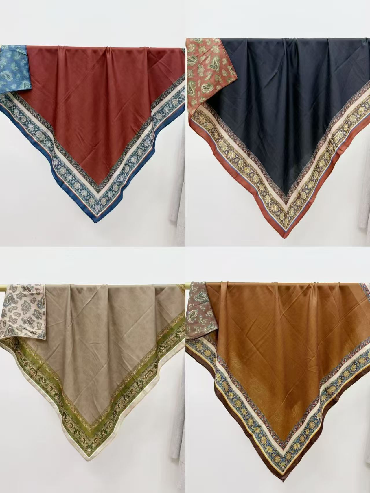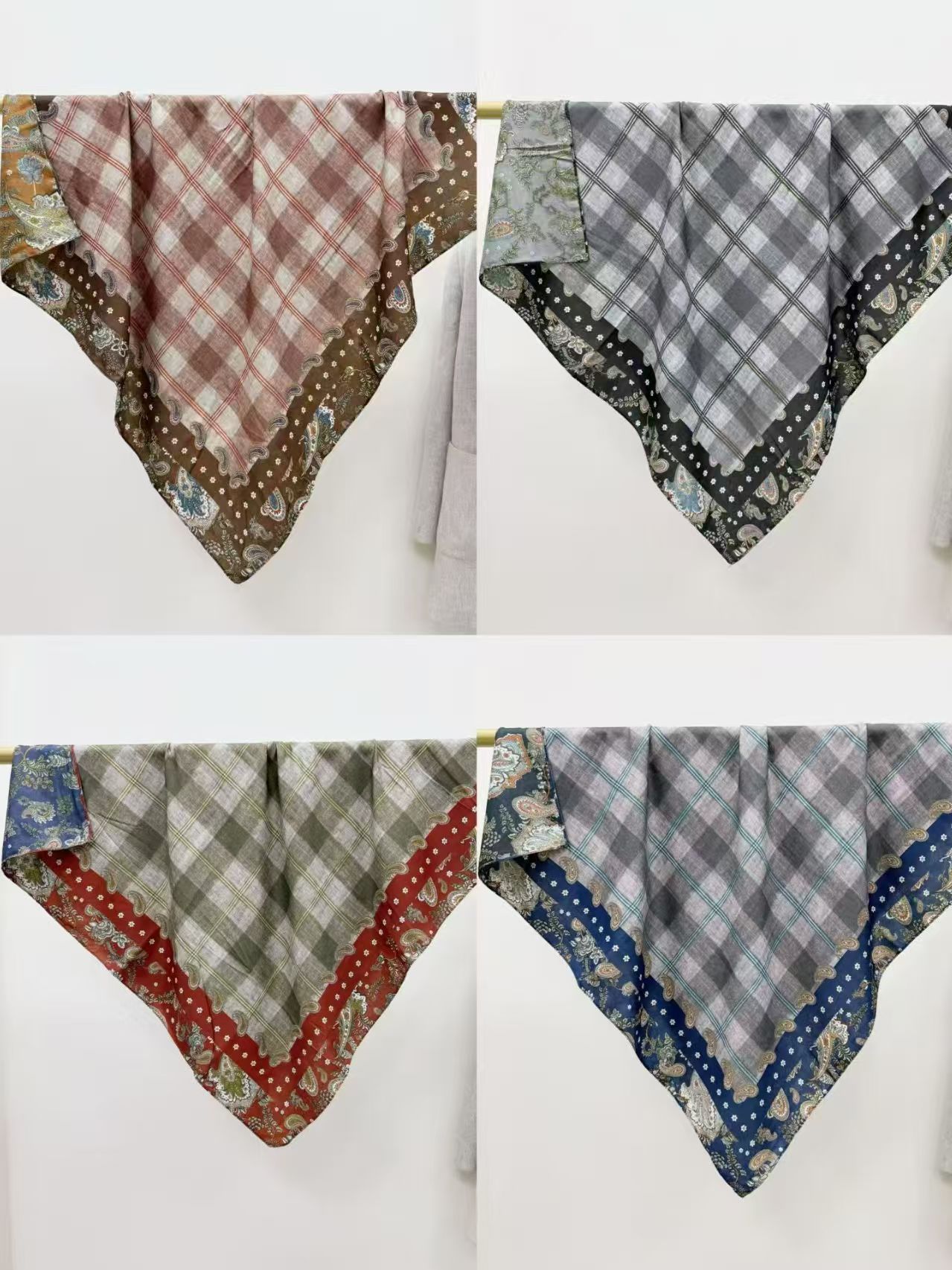 跨境新款人字纹围巾头巾女民族风90cm方巾双面腰果花印花旅游防晒 投诉