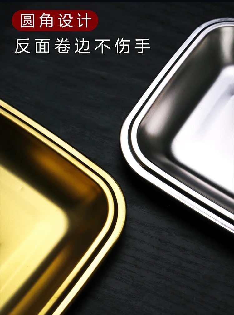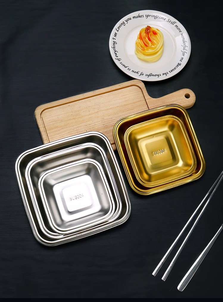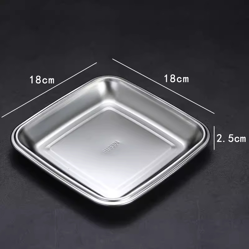 材质: 不锈钢 表面工艺: 抛光 品牌: 潮吉正 产品质量等级: 合格品 风格: 现代简约 形状: 方形 是否进口: 否 产品类别: 碟 货号: CJZ 适用人群: 儿童,成人,老人 图案: 纯色 微波炉: 不可用 适用场景: 酒店,饭菜,其他 产地: 潮州 加印LOGO: 可以 加工定制: 可以 产品上市时间: 2024年 价格段: 5-10元 适用对象: 通用 是否有专利: 否