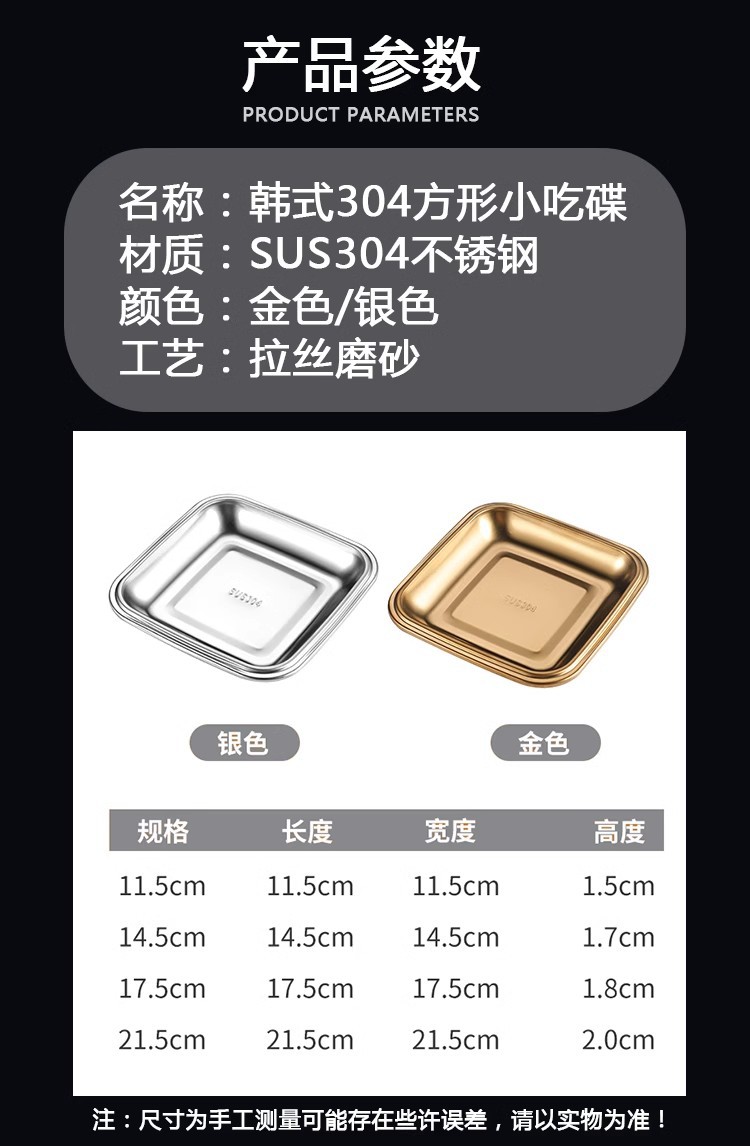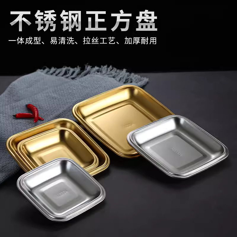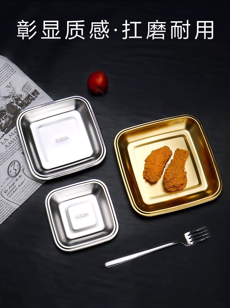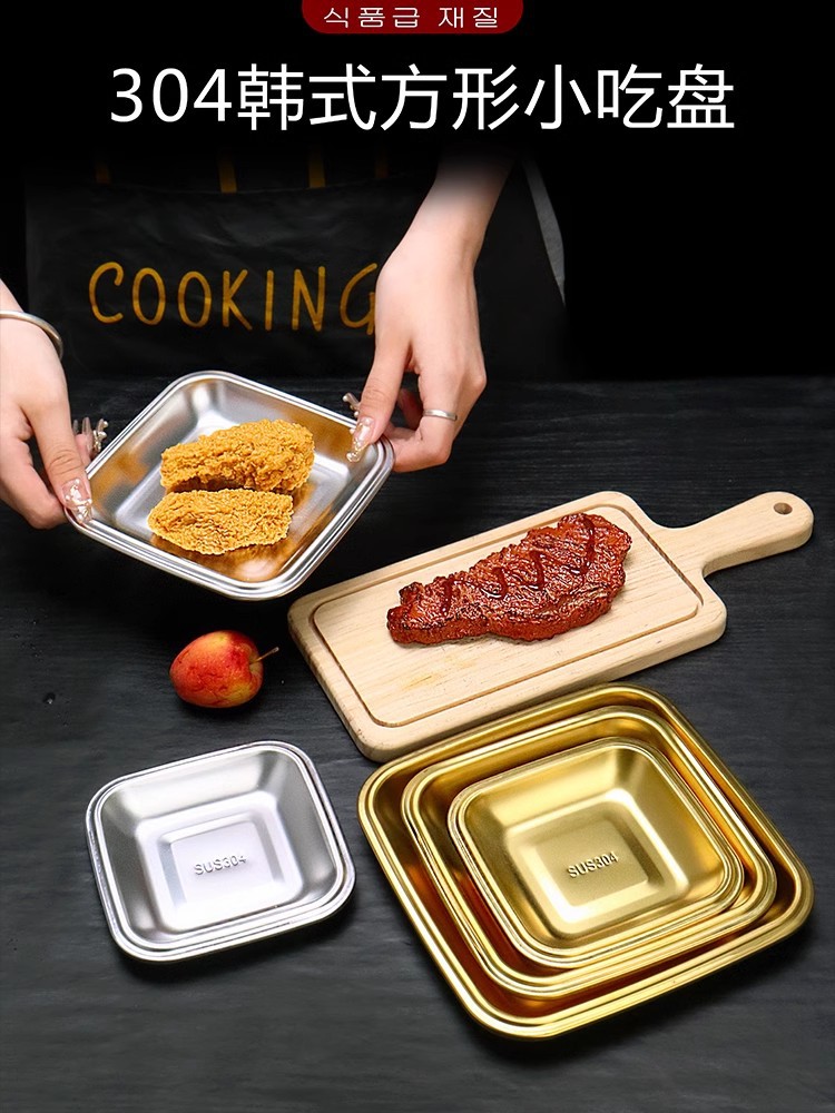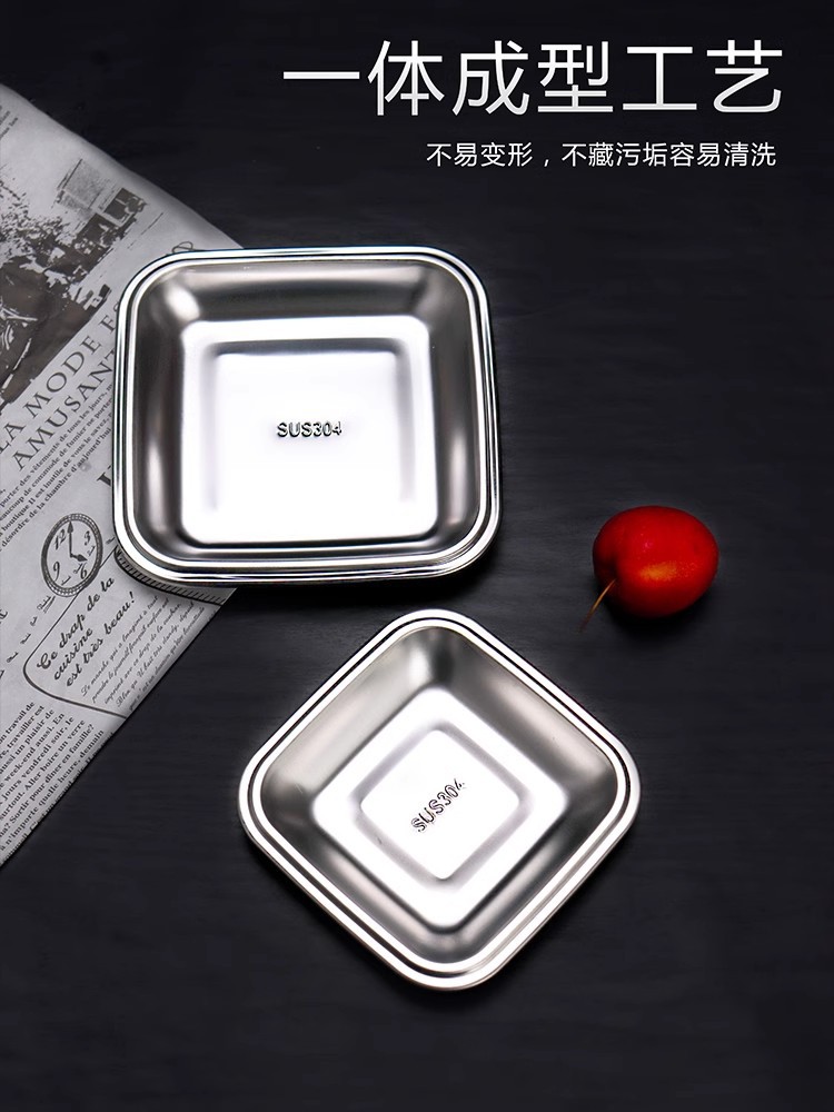 304不锈钢小吃盘韩式正方形盘烧烤盘子烤肉店菜碟火锅菜盘甜品盘 English | 投诉