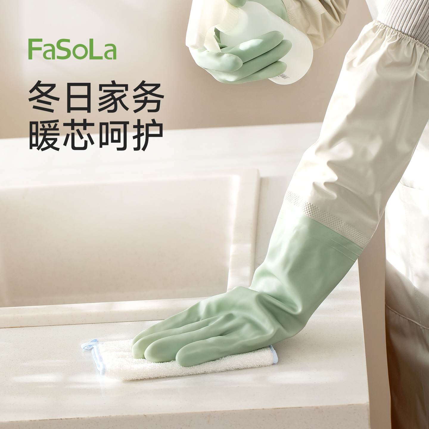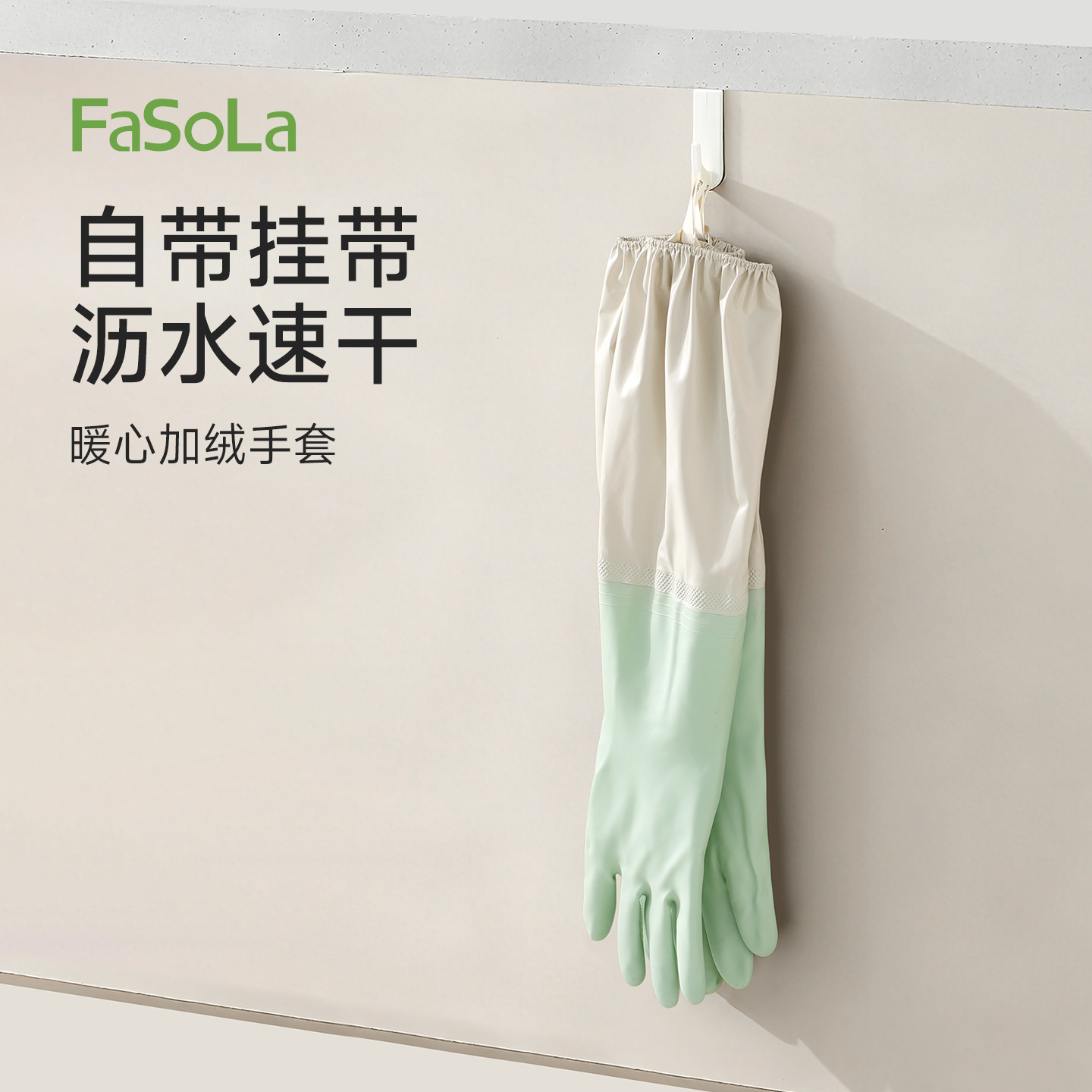 FaSoLa洗碗手套冬季加绒加厚耐磨家务清洁用厨房刷锅防水家务手套