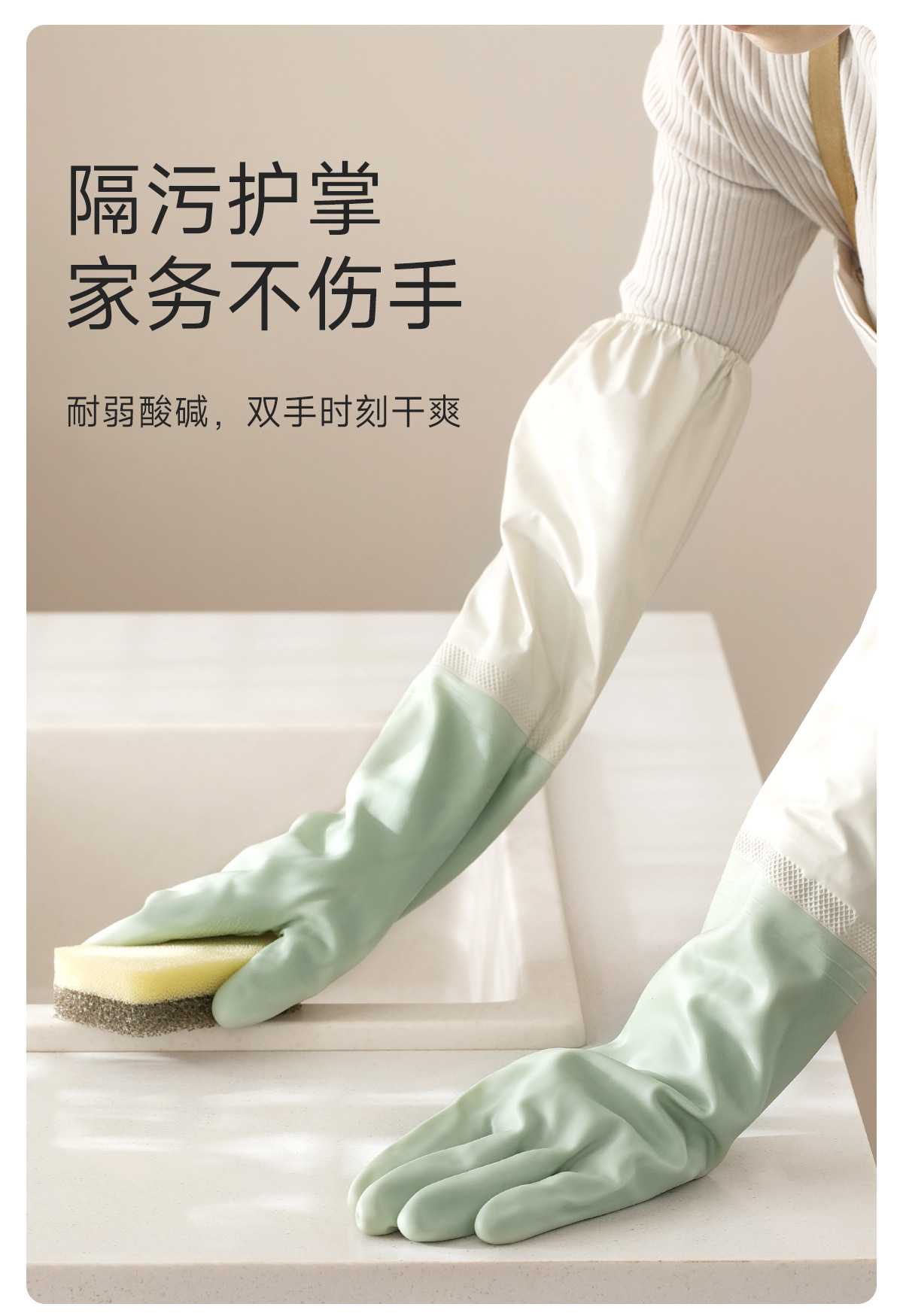 材质: 聚氯乙烯、涤纶 品牌: FaSoLa 厚薄: 加厚 产品类别: 洗碗手套 手套长度: 50*13.7cm 箱装数量: 150 是否进口: 否 货号: PS-852 颜色: 浅绿色,燕麦色 图案: 纯色 产地: 中国 贸易属性: 内贸+外贸 是否支持一件代发: 支持 价格段: 5-10元 产品上市时间: 2025 专利: 否 包装重量: 154g 主要销售地区: 南美,东南亚,北美,东北亚,中东,其他 有可授权的自有品牌: 是 是否跨境出口专供货源: 是 重量: 0.001 kg/套