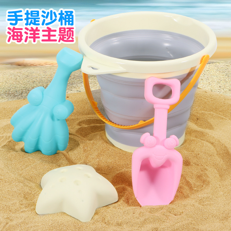 2202-1灰白色折叠桶4件套沙滩实拍图