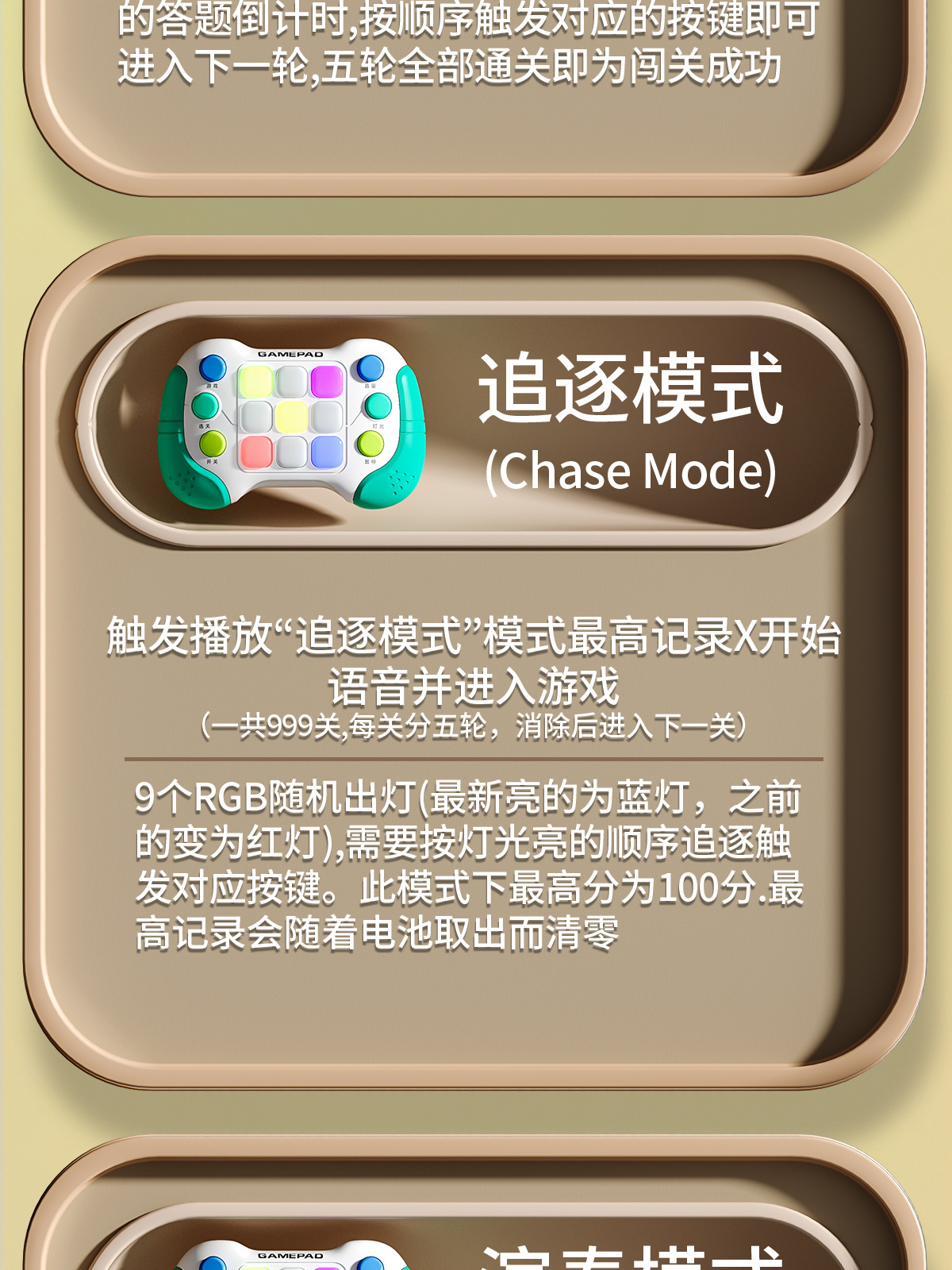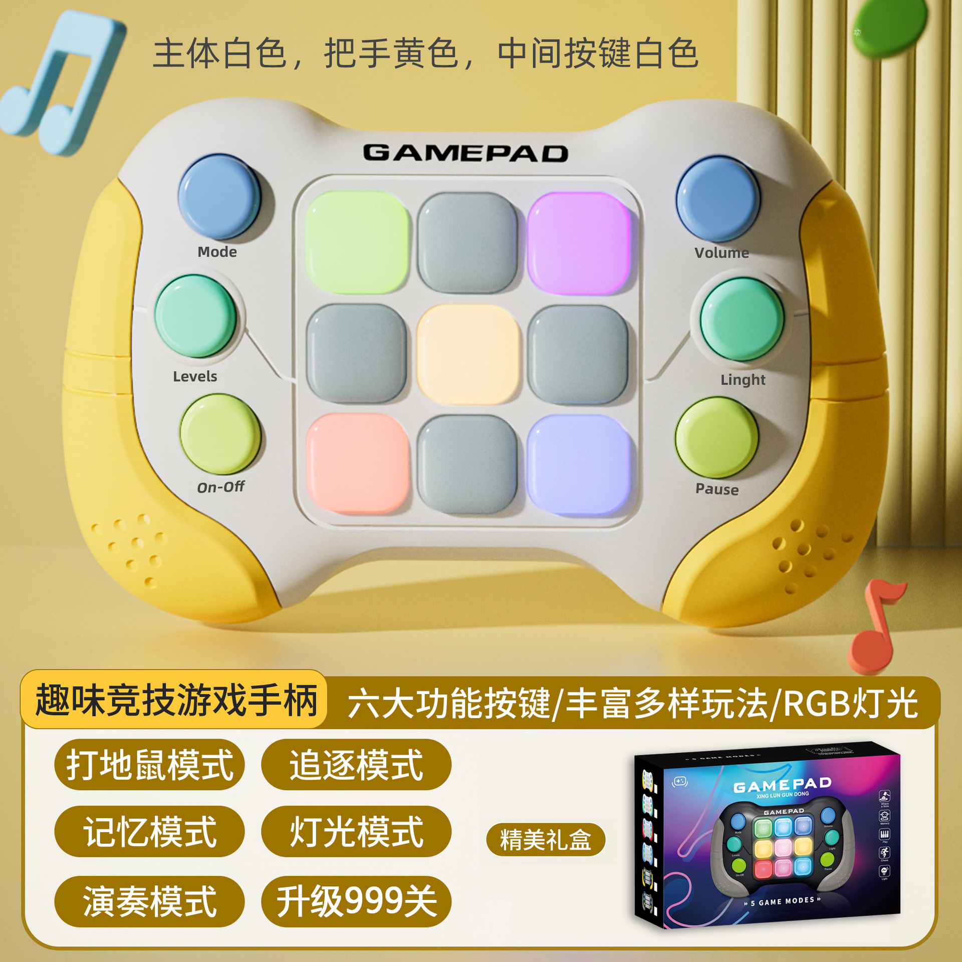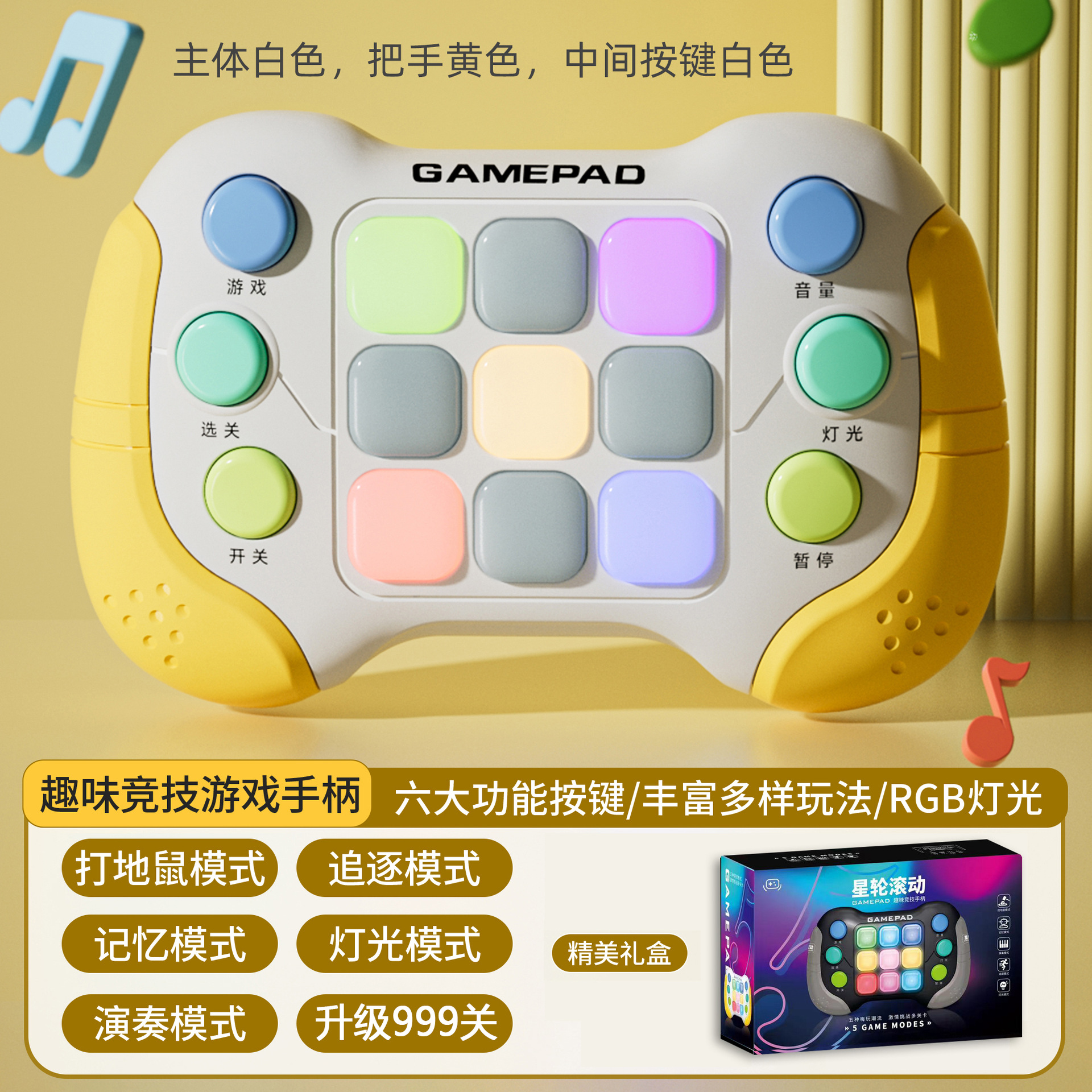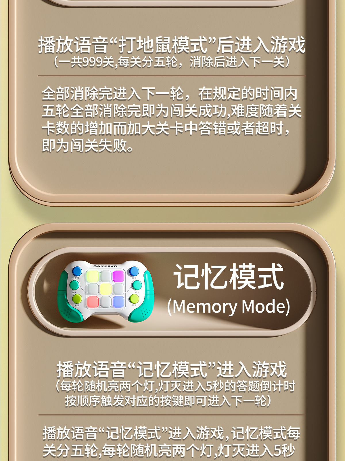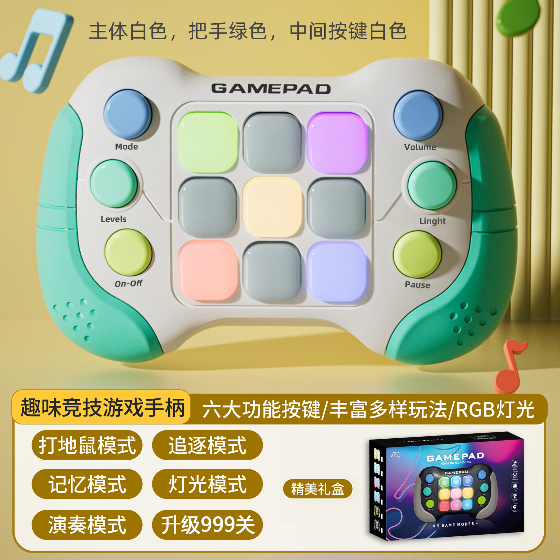 8793功能:999个关卡,五种模式:打地鼠模式/记忆模式/追逐模式/演奏模式/灯光模式