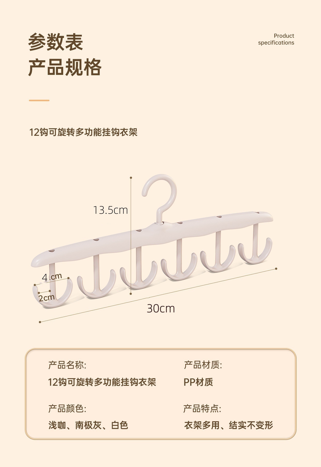 材质: 塑料 产品类别: 衣架 包装数量: 单只装 是否进口: 否 形象: 其它 塑料新料占比: 100%新料 产地: 浙江 重量: 0.03 kg/个