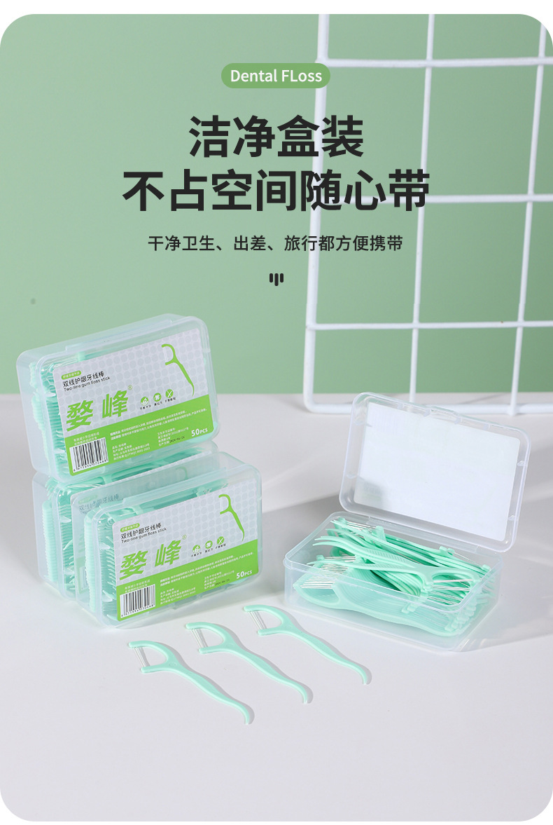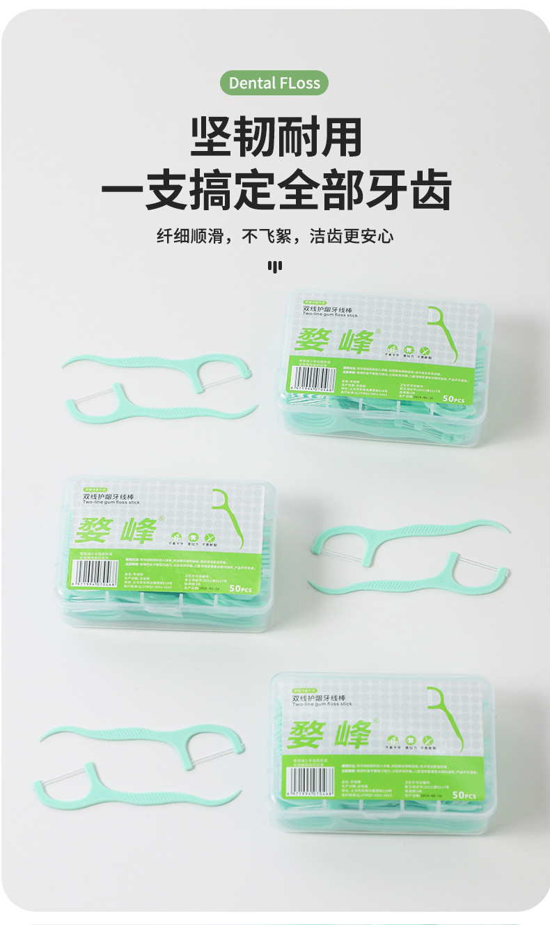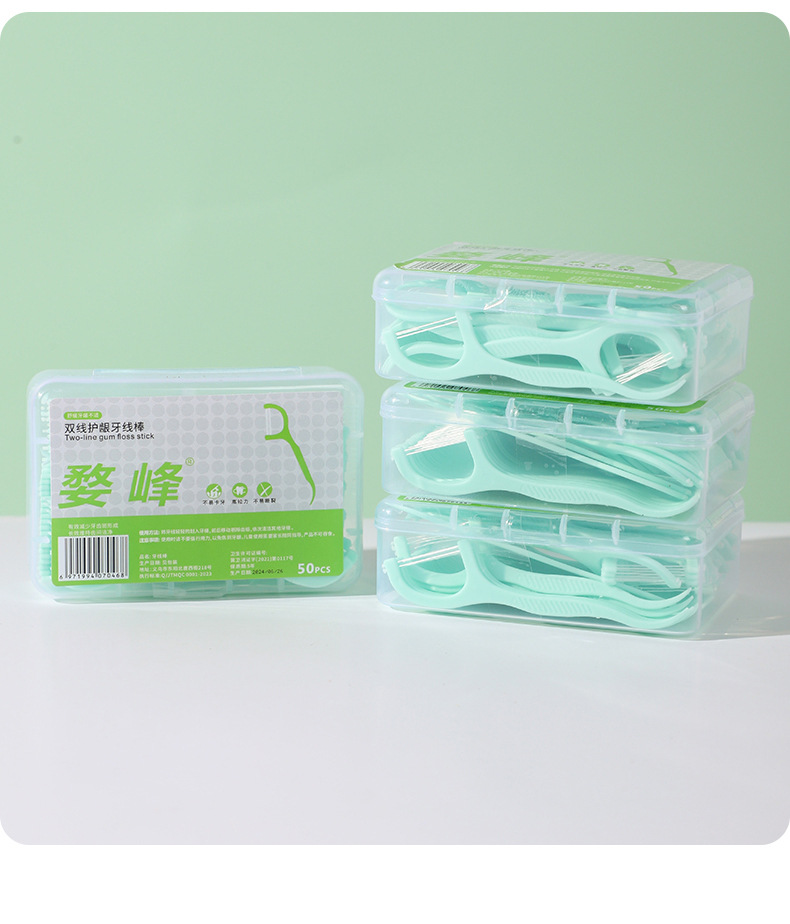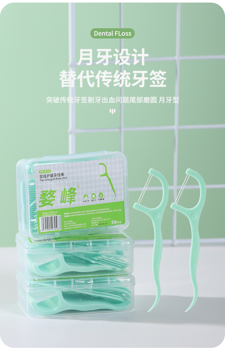 双线牙线50支装一次性弓形塑料牙线便携式口腔清洁薄荷味双线牙线