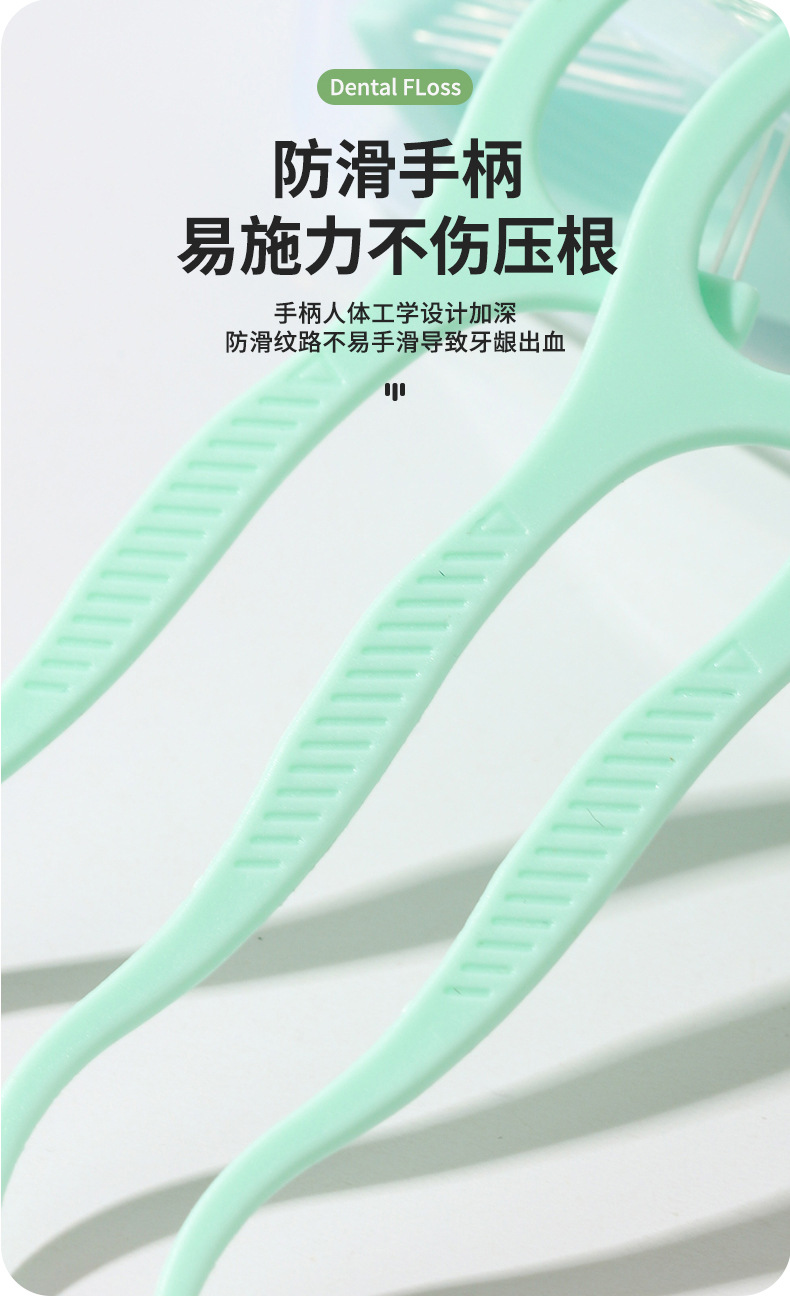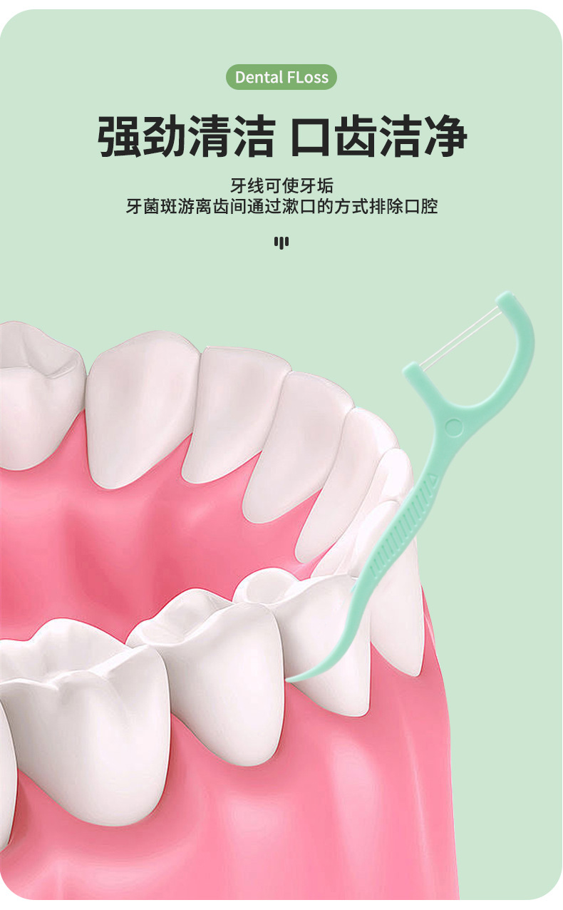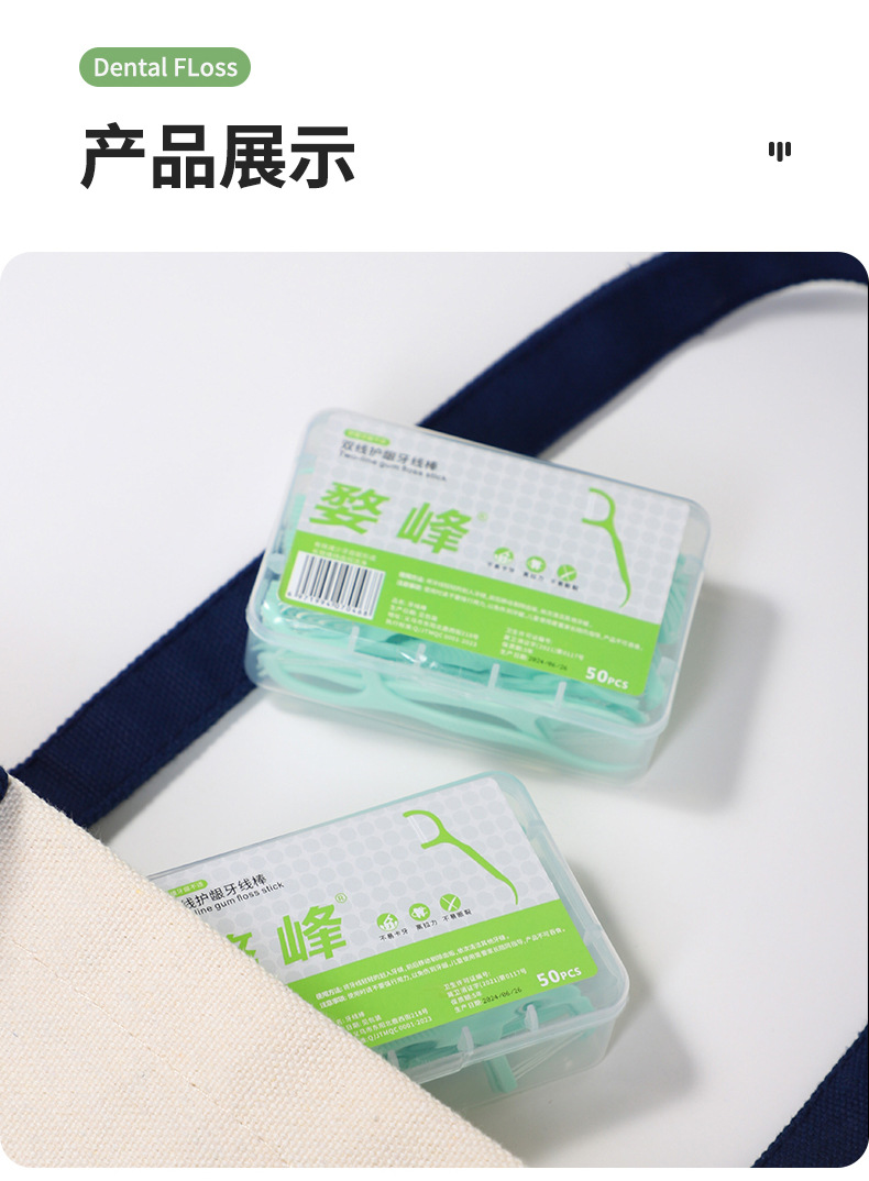 双线牙线50支装一次性弓形塑料牙线便携式口腔清洁薄荷味双线牙线