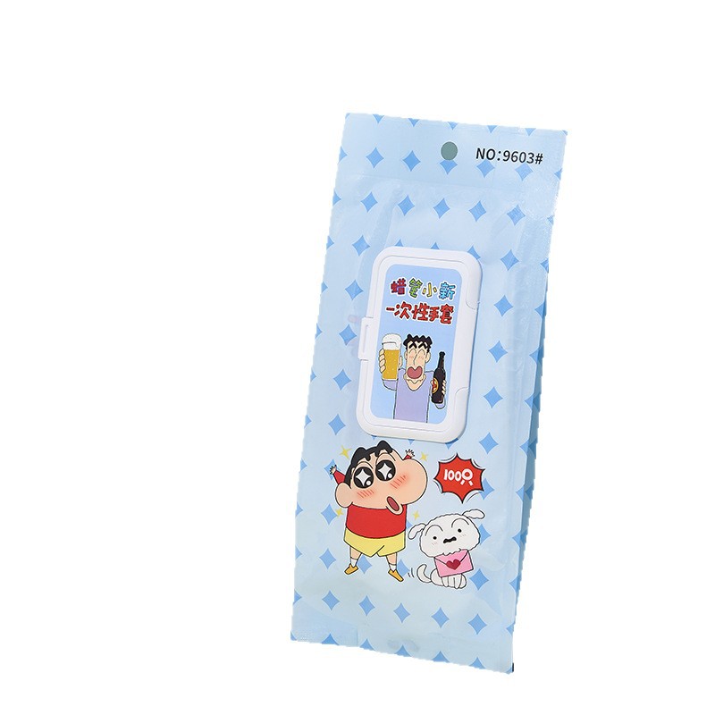 蜡笔小新一次性手套独包小包食品级带盖抽取式卡通加厚蓝色手套 English | 投诉