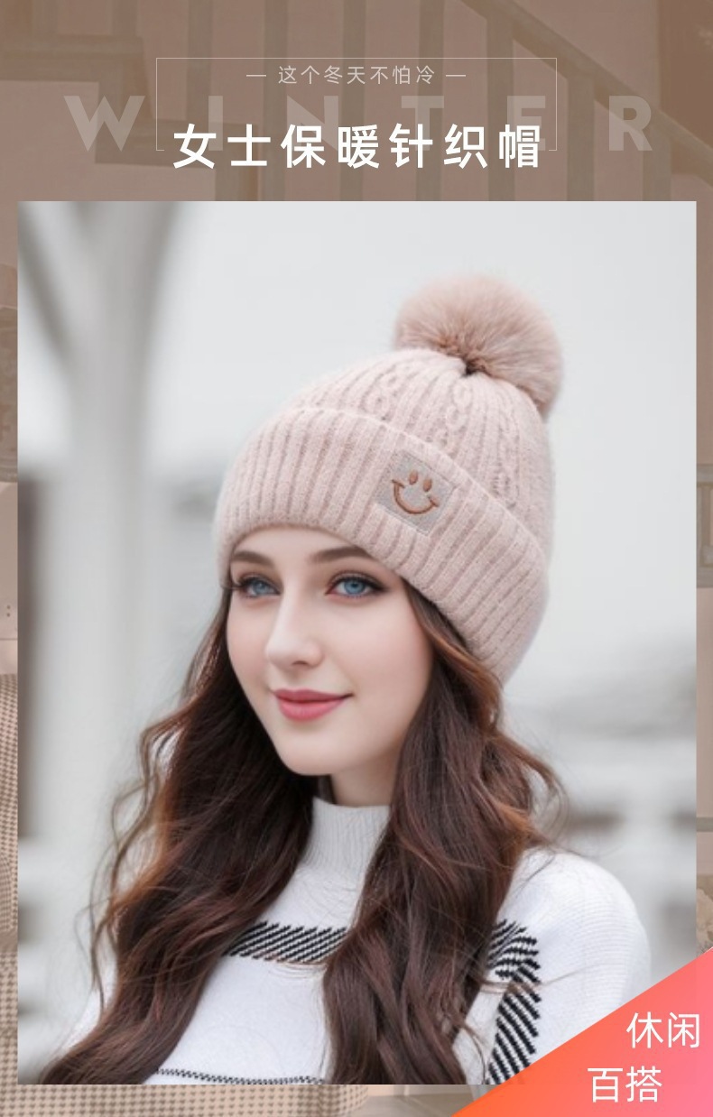 秋冬帽子女可爱百搭套头帽加绒加厚毛球针织帽保暖护耳毛线帽外贸 English | 投诉