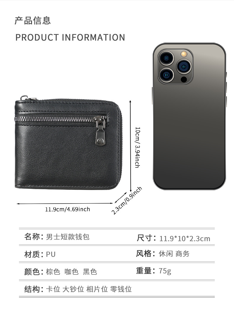 亚马逊新款男士复古钱包大容量多卡位带零钱袋时尚卡包钱包零钱包 English | 投诉